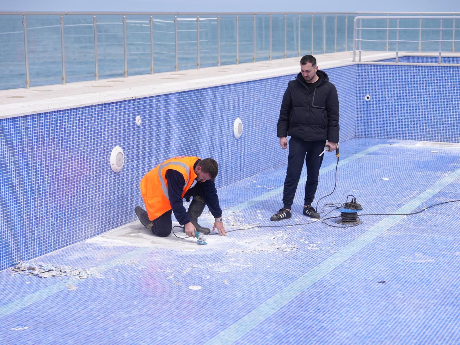 Sezon öncesi yürütülen hazırlıklar kapsamında yüzme havuzu yenilenerek genişletilirken, kum plajda temizlik çalışmaları gerçekleştiriliyor. Ayrıca tesisin açık ve kapalı alanlarında kapsamlı temizlik ve peyzaj düzenlemeleri yapılıyor.