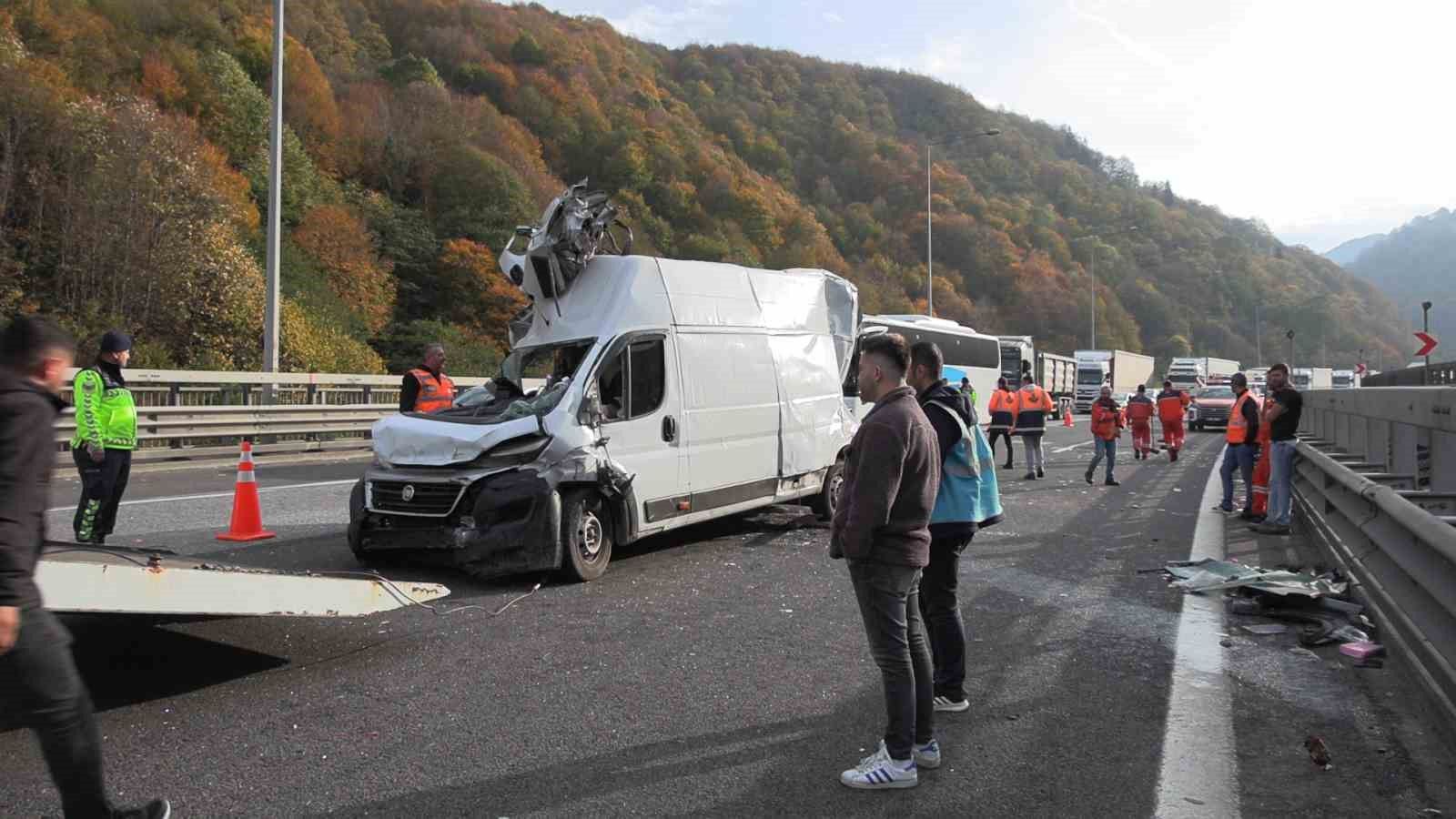 Kaza, TEM Otoyolu’nun Bolu Dağı Tüneli çıkışında 2. Viyadük mevkiinde meydana geldi. İstanbul istikametinde seyreden F.K. idaresindeki 80 DB 789 plakalı tır, C.A. yönetimindeki 44 AHG 684 plakalı yolcu otobüsü ile çarpıştı. Aynı istikamette seyreden A.Y. hakimiyetindeki 34 GZK 273 plakalı panelvan da kazaya karıştı. Meydana gelen kazada panelvan otoyolda devrildi. Yan yatan araç içerisindeki sürücü A.Y. yaralandı. 112 Acil Çağrı Merkezi’ne yapılan ihbar üzerine bölgeye sağlık, jandarma ve itfaiye ekipleri sevk edildi.