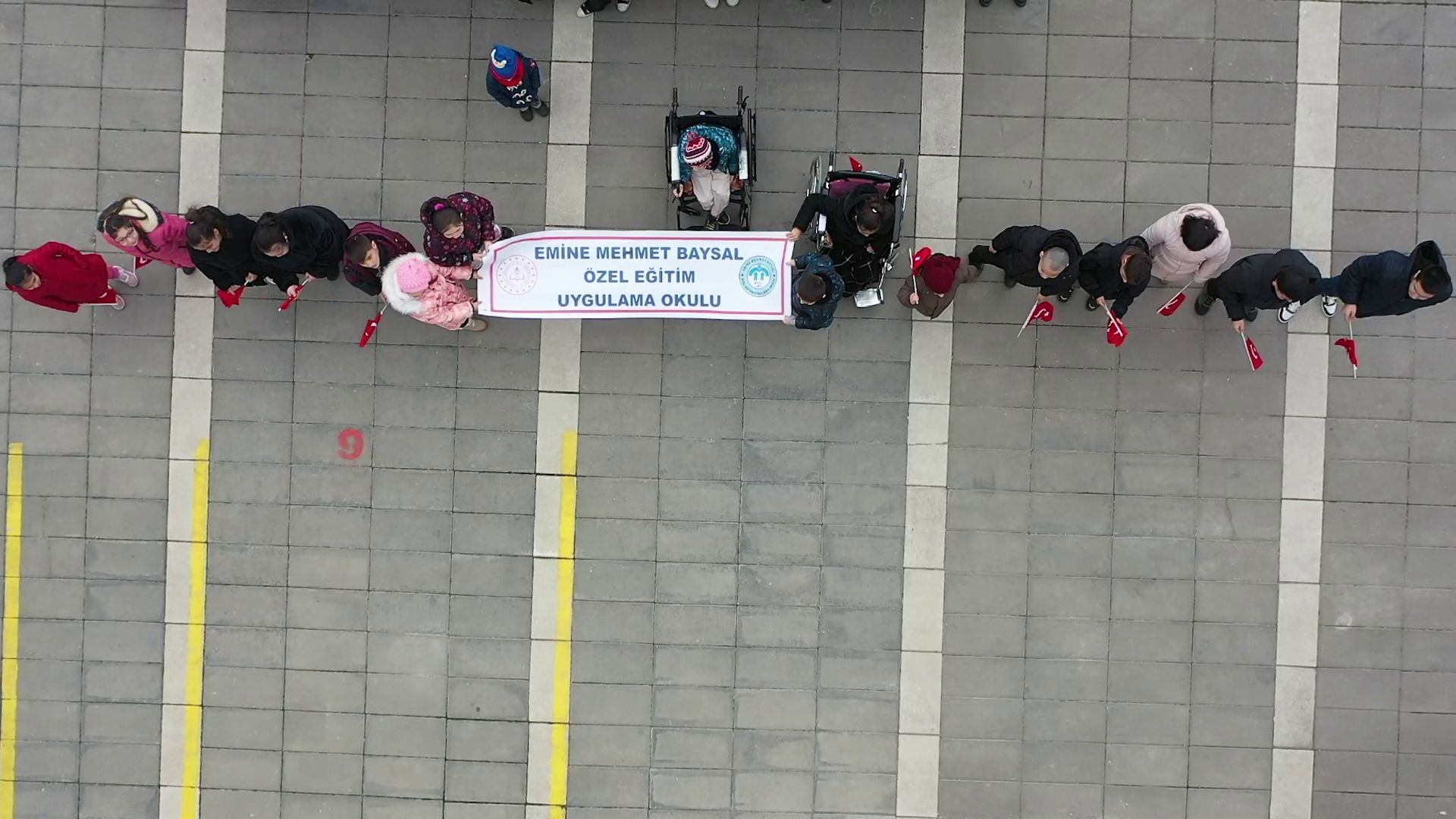 Emine Mehmet Baysal Özel Eğitim Uygulama Okulu'nun bahçesinde düzenlenen ‘Bayrak sevgisi’ temalı etkinlikte, özel öğrenciler ve aileleri Türk bayrağına duydukları sevgi ve bağlılığı müzikli gösteriyle ifade etti. Öğretmenler rehberliğinde hazırlanan programda, okul öğretmenleri ve veliler, ellerindeki renkli kartonlarla Türk bayrağı figürü oluşturdu. Etkinlik, öğrencilerin ellerindeki Türk bayrağı bağlı balonları gökyüzüne bırakmasıyla sona erdi.