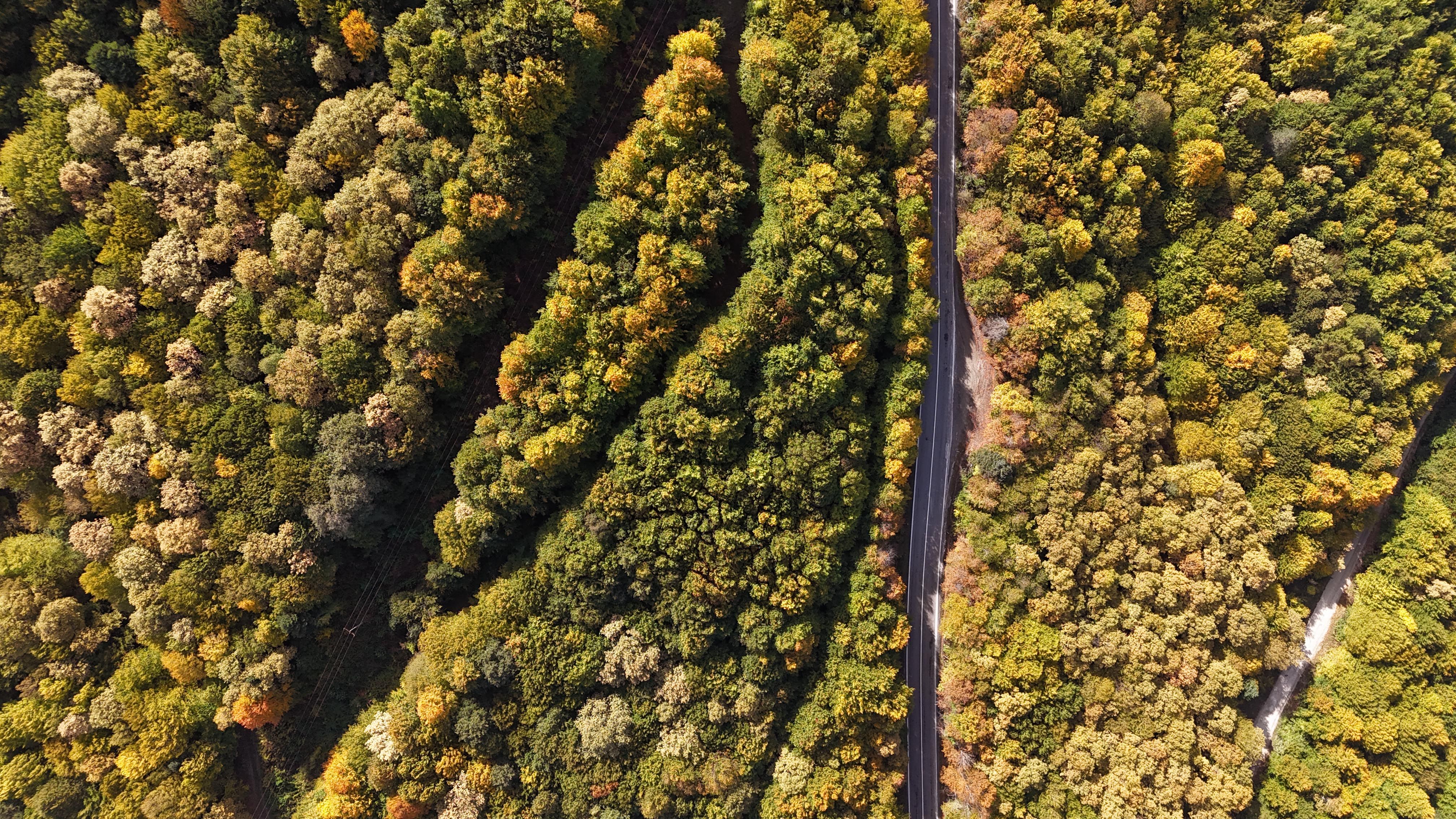 Yeşil doğası ve yüzde 65’i ormanlarla kaplı Bolu’da sonbaharın gelmesiyle birlikte ormanlarda renk cümbüşü yaşanmaya başladı. Sağında ve solunda ormanların bulunduğu Bolu-Kıbrıscık-Seben kara yolundaki ormanlardaki ağaçlar sonbaharın gelişiyle birlikte sarardı. Ağaçların yeşil renginin, sarı ve kahverengi tonlarıyla iç içe geçmesiyle oluşan eşsiz manzara dron ile görüntülendi.