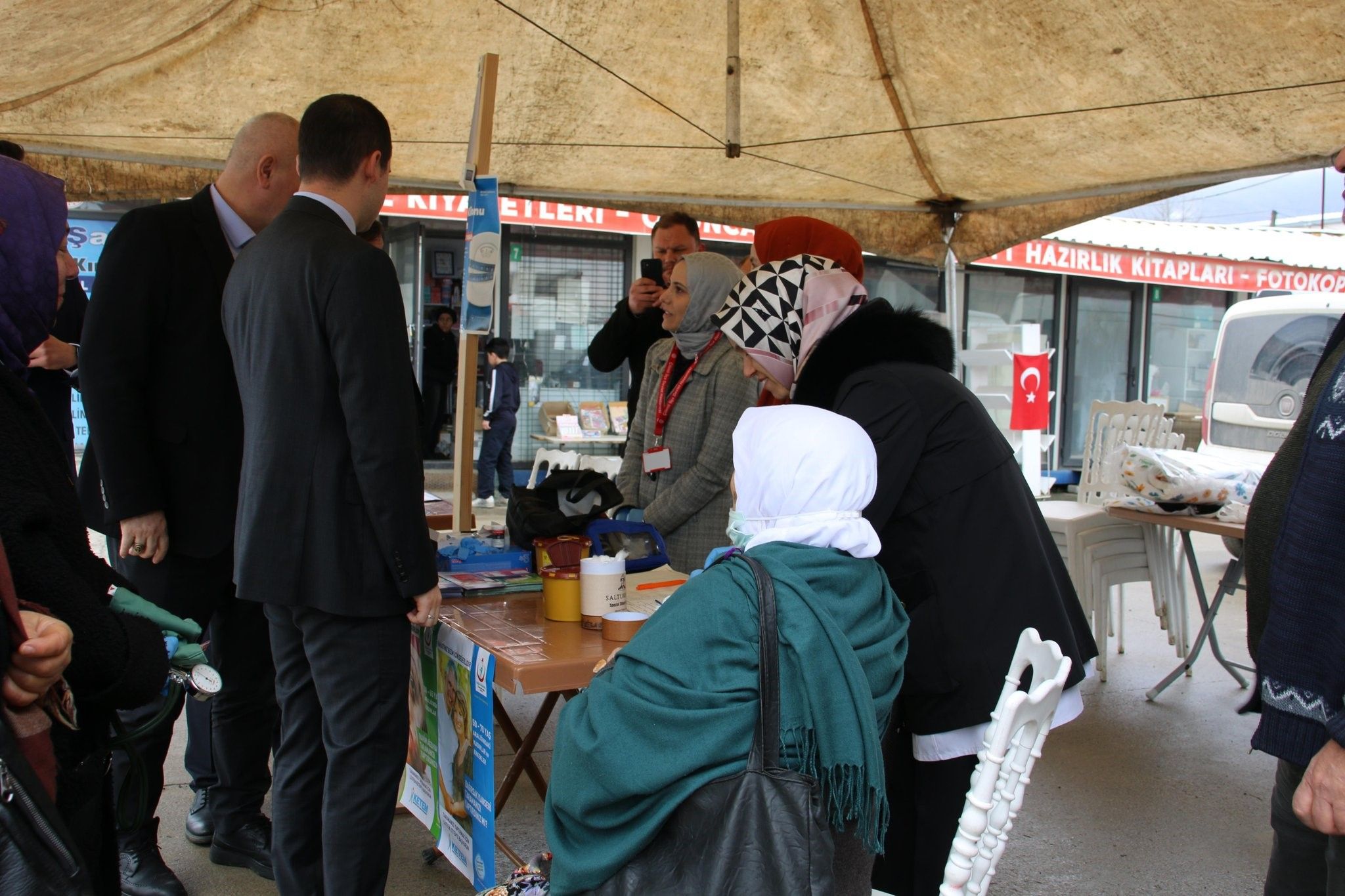 Çilimli Kaymakamı Furkan Alpay, Belediye Başkanı Yılmaz Yıldız ile birlikte, Sigara Bırakma Günü kapsamında İlçe Toplum Sağlığı Merkezi tarafından ilçe pazaryerinde kurulan bilgilendirme standını ziyaret etti.