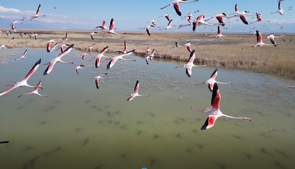 CUMHURBAŞKANLIĞI kararı ile kesin korunacak hassas alan ilan edilen Kayseri’deki Hürmetçi Sazlığı ile Yeşilhisar, Develi ve Yahyalı ilçeleri sınırları içerisindeki Sultansazlığı Milli Parkı’ndaki flamingolar dron ile görüntülendi.