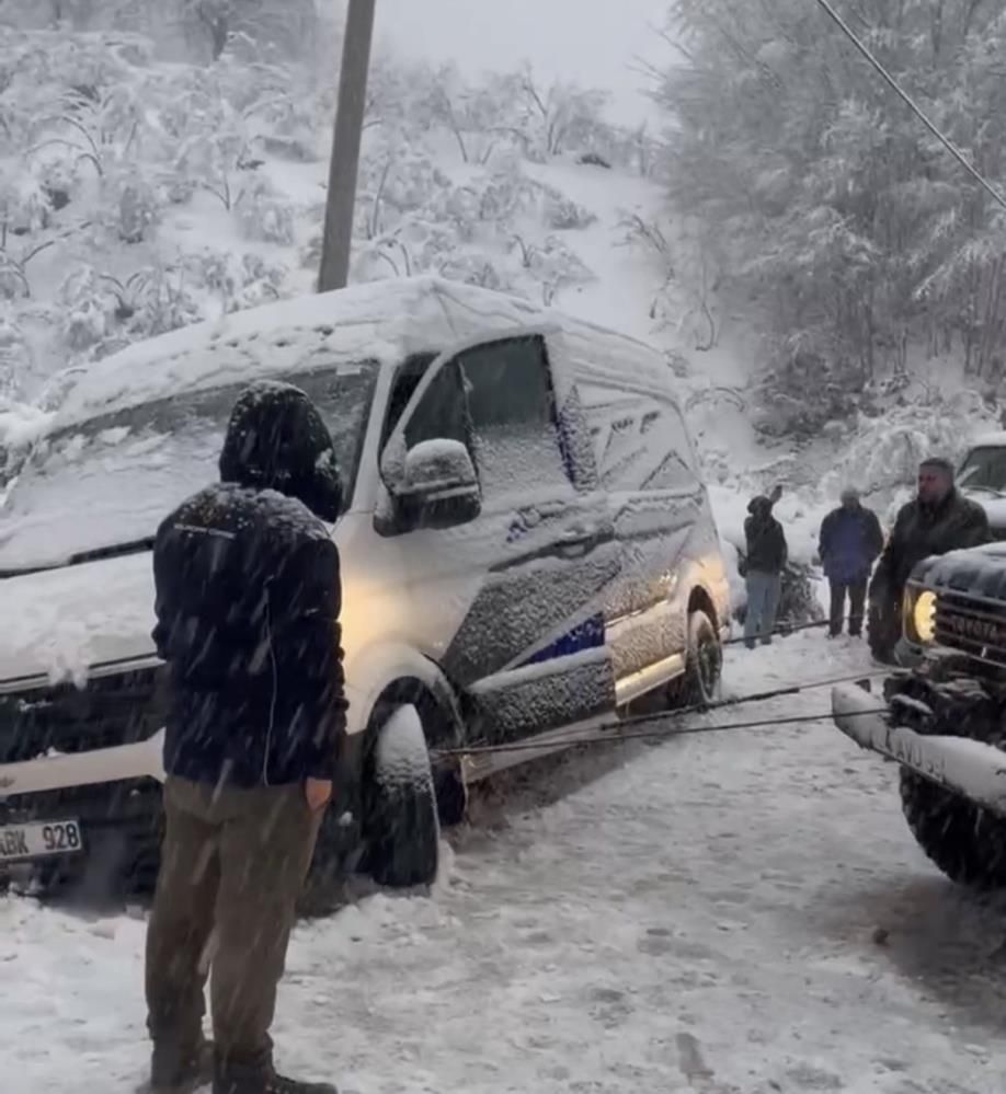 Şarampole kayan minibüsü, off-road araçları kurtardı
