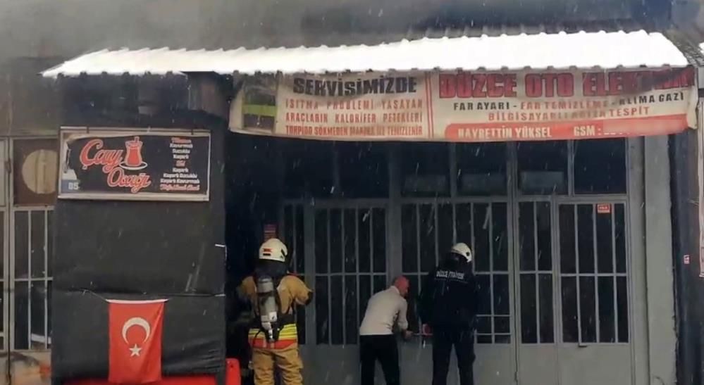 Düzce’de sanayi çarşısında kapalı dükkan içinden çıkan dumanları fark edip itfaiyeyi arayan bir kişi, dükkandaki yangının kısa sürede söndürülmesini sağlayarak diğer dükkanların da yanmasını engelledi.