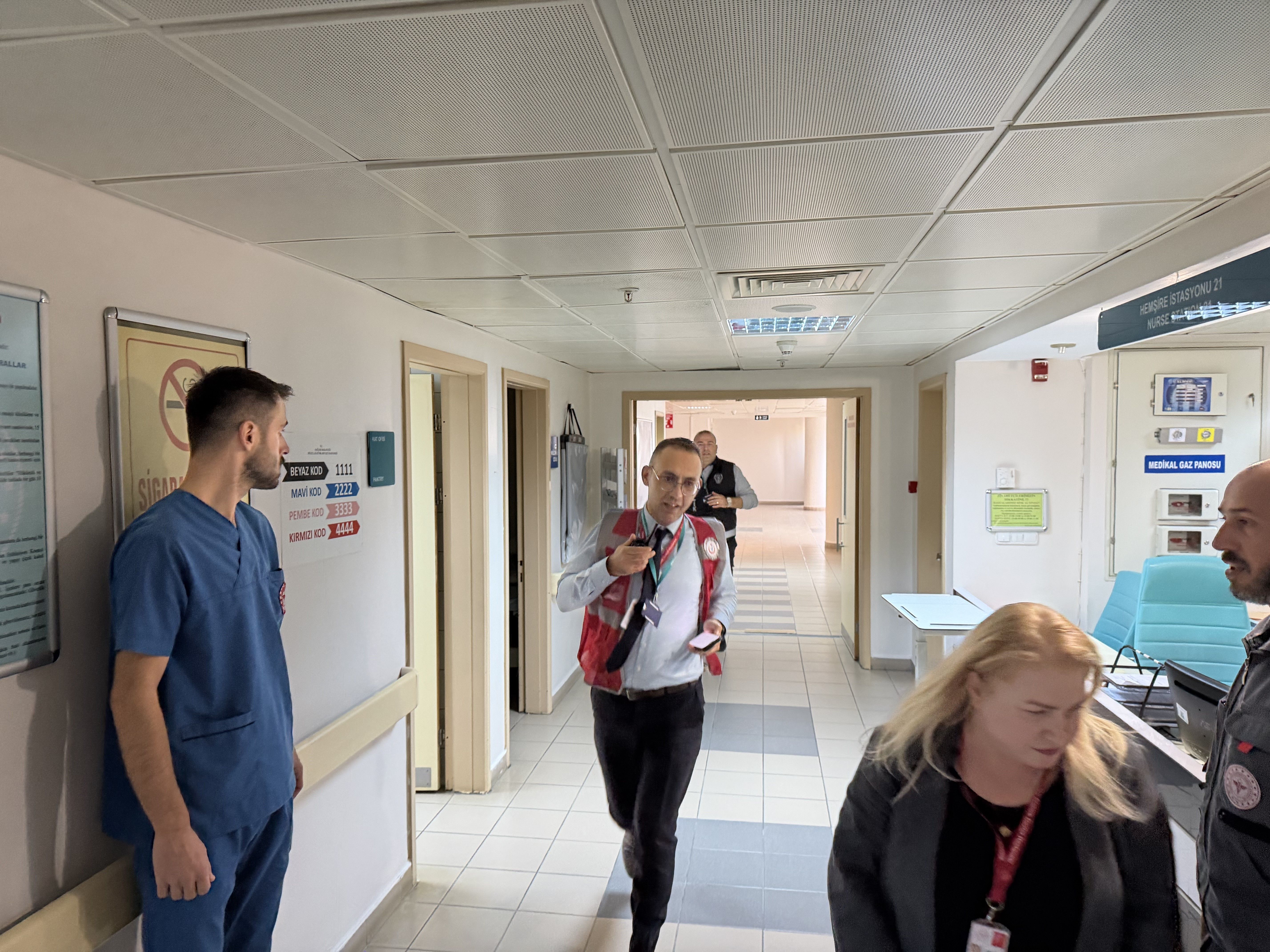 Hastane Afet Planı (HAP) Başkanı Uzm. Dr. Özge Yurtseven, "Kalite gereği hastanemizde yılda 2 kere tatbikat yapmamız gerekiyor. Bunun bir tanesinin yangın olması zorunlu. Böyle olunca bizde yangın tatbikatı yaptık. Arkadaşlar görevlerini hatırlamış oldu. Muhtemel bir yangın durumunda kimin ne yapması gerektiğini görmüş olduk. 2. katta doktor odasında yangın çıktı tatbikat gereği. Gerekli müdahale ve söndürme ekibi olaya müdahale edebildiğini gördük. Hastaları tahliye ederek herkesin tecrübelenmesi sağlandı. Tatbikat yapacağımızı hastalarımıza söyledik. Panik ve endişeyi azaltmak açısından tatbikat yapılacağını anons olarak hastanede duyurduk. Böyle şeyler kargaşaya sebebiyet verebiliyor yanlış bilgilendirmeler olabiliyor. Bunun önlemlerini alabilmek için de gerekli hassasiyeti gösterdik" şeklinde konuştu.