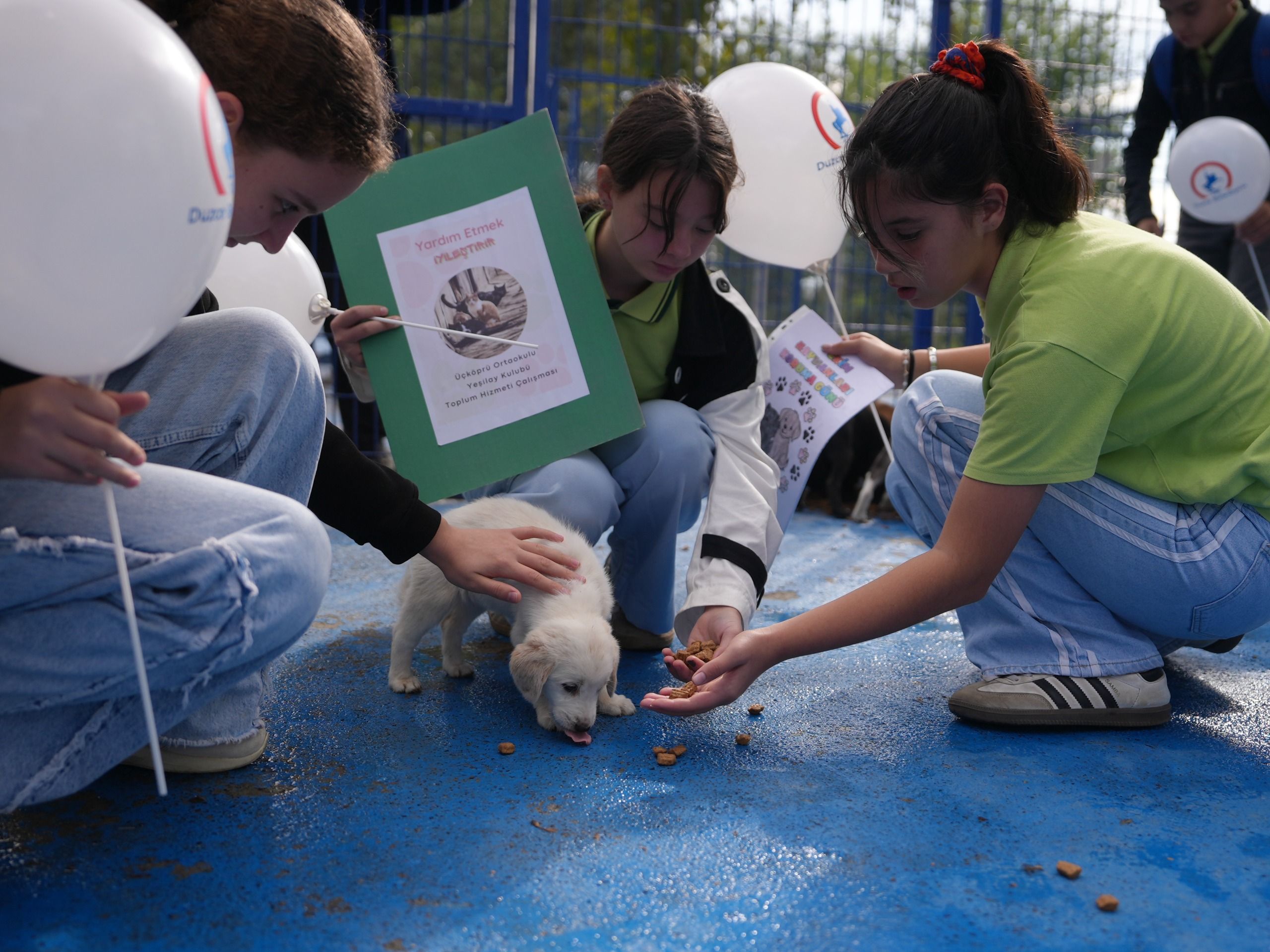 Düzce Belediyesi 4 Ekim Hayvanları Koruma Günü’nde Mergiç’teki sokak hayvanları bakımevinde öğrencileri ağırladı. Mama bağışında bulunan öğrenciler, yavru köpekleri sevdi ve besledi.