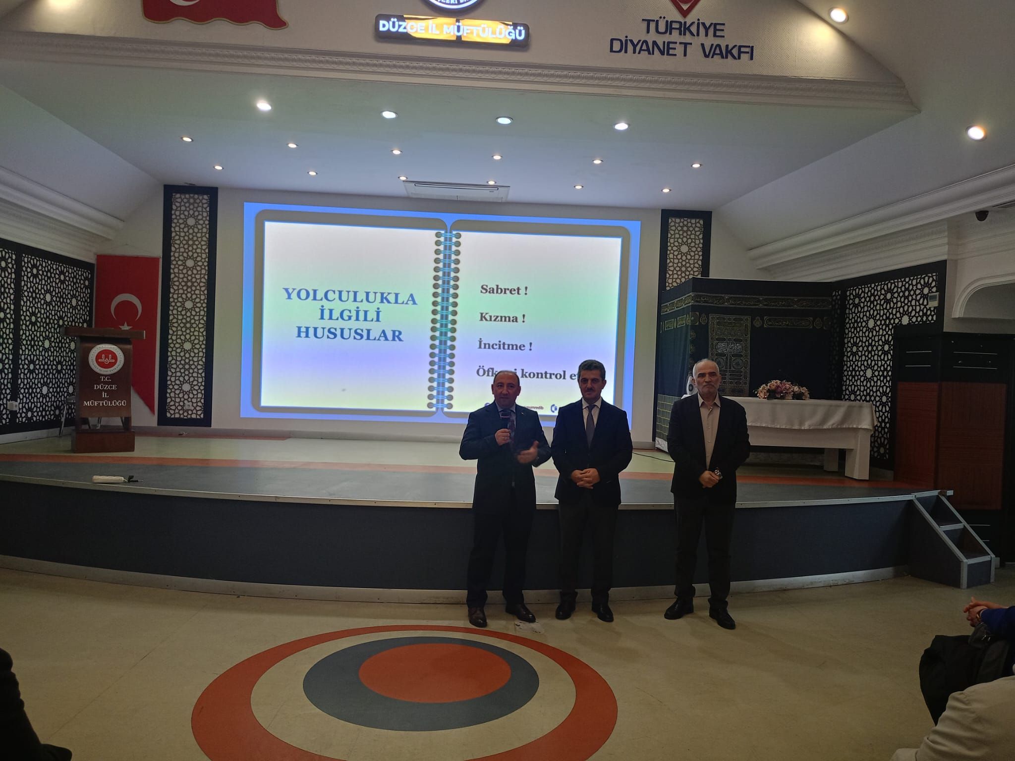 Düzce İl Müftülüğü koordinesinde, 2026 yılında kutsal topraklara gidecek hacı adaylarına yönelik eğitim semineri düzenlendi.