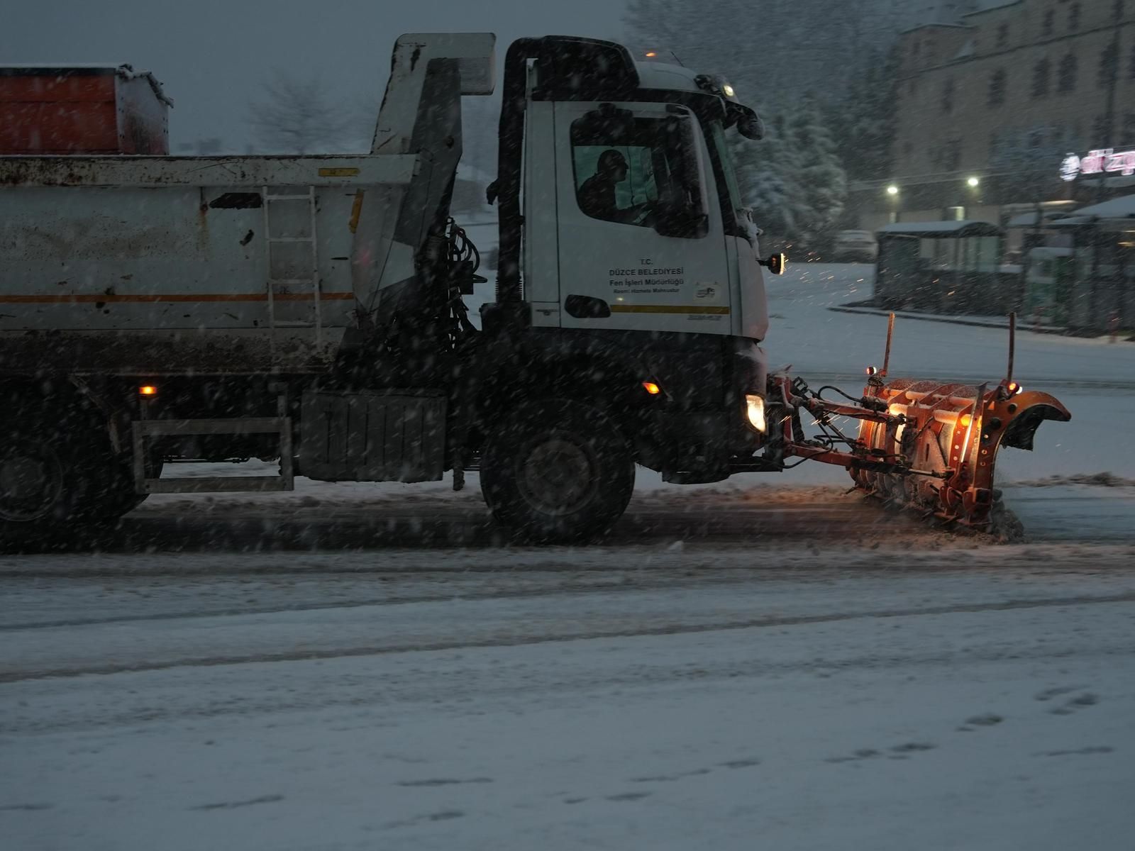 Düzce Belediyesi, kent genelinde etkisini artıran kar yağışı nedeniyle karla mücadele çalışmalarını aralıksız sürdürüyor. Özellikle Bahçeşehir ve Konuralp bölgeleri başta olmak üzere birçok noktada kar küreme ve tuzlama faaliyetleri başlatıldı.