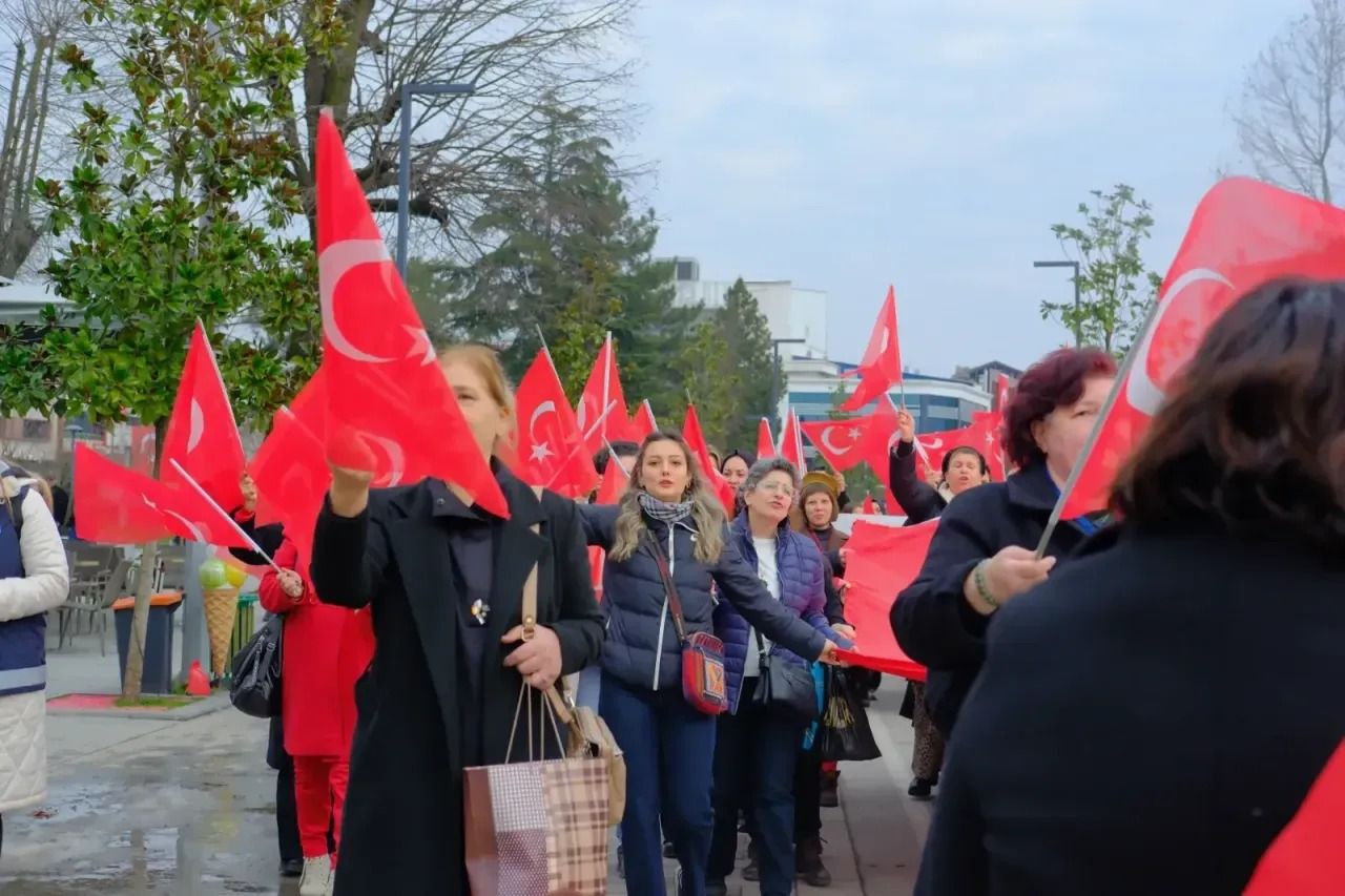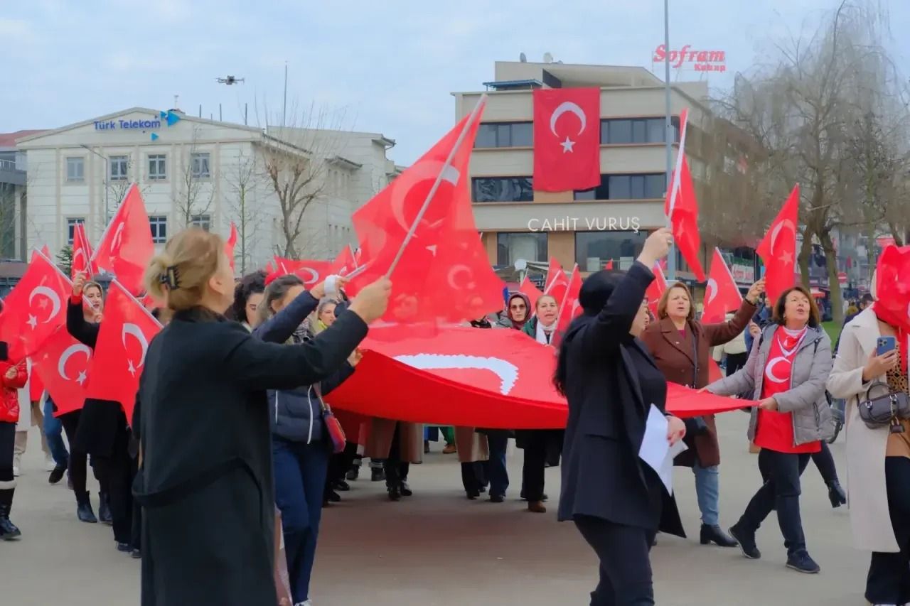 Düzce Kent Konseyi Kadın Meclisi tarafından düzenlenen yürüyüş, Gaziantep Caddesi başından başlayarak Anıtpark Meydanı’na kadar sürdü. Yürüyüş boyunca vatandaşların yoğun ilgisiyle karşılaşan kadınlar, el emeğiyle hazırlanan Türk Bayrağı’nı gururla taşıdı. 1881 motifle yapılan Türk Bayrağı dikkat çekti. Anlamlı etkinlikte birlik, beraberlik ve bayrağa duyulan saygı vurgulanırken, katılımcılar milli değerlere sahip çıkmanın önemine dikkat çekti.