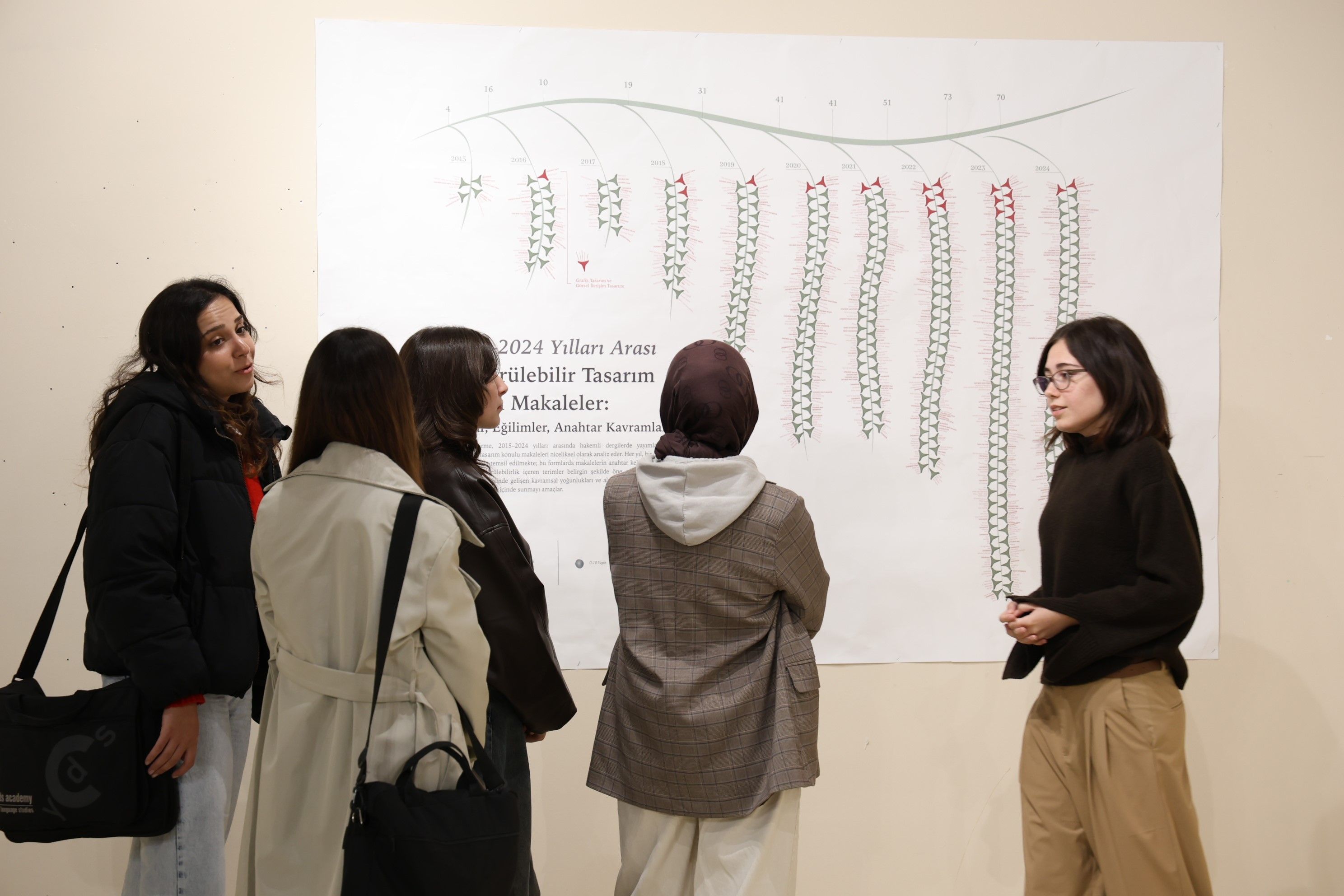 Sergi açılışına; Düzce Üniversitesi Rektörü Prof. Dr. Nedim Sözbir, Rektör Yardımcısı Prof. Dr. İlhan Genç, Rektör Danışmanı Prof. Dr. Açelya B. Gönüllü, Sanat Tasarım ve Mimarlık Fakültesi Dekanı Prof. Dr. Kazım Özkan Ertürk, Araştırma Dekanı Prof. Dr. Emine Tekin, İletişim ve Tanıtım Koordinatörü Öğr. Gör. Duygu Özdemir Cömert, Düzce Üniversitesi akademik ve idari personeli ile öğrencileri katıldı. Sergi, sürdürülebilirlik konusunu veri görselleştirme üzerinden ele alıyor. Çalışmalar; son 10 yıla ait sürdürülebilir tasarım ile ilgili yapılan akademik çalışmaların verilerinin görselleştirmeleri ile gündelik yaşamda sıkça kullandığımız ve hızla atığa dönüşen malzemelerden üretilmiş işler arasında bir bağ kuruyor. Hem mevcut durumu görünür kılmayı hem de izleyicide farkındalık oluşturmayı amaçlayan sergi, verinin estetik ve eleştirel bir ifade biçimi olarak nasıl kullanılabileceğine dair bir sorgulama sunuyor.