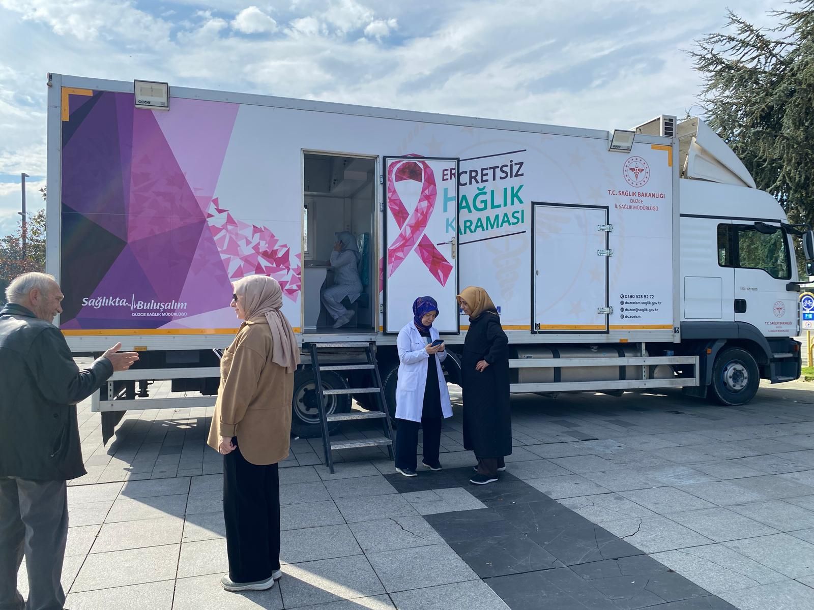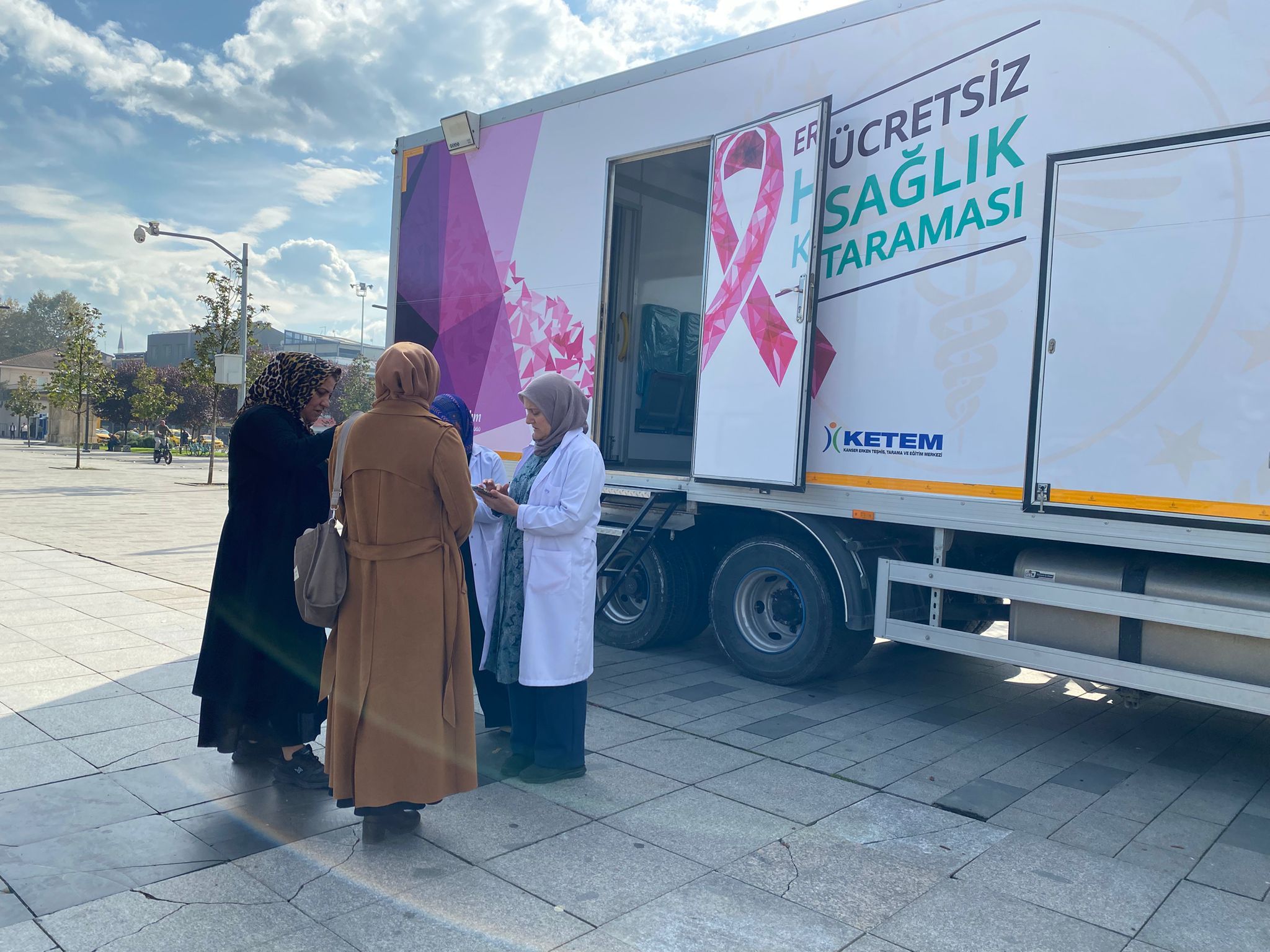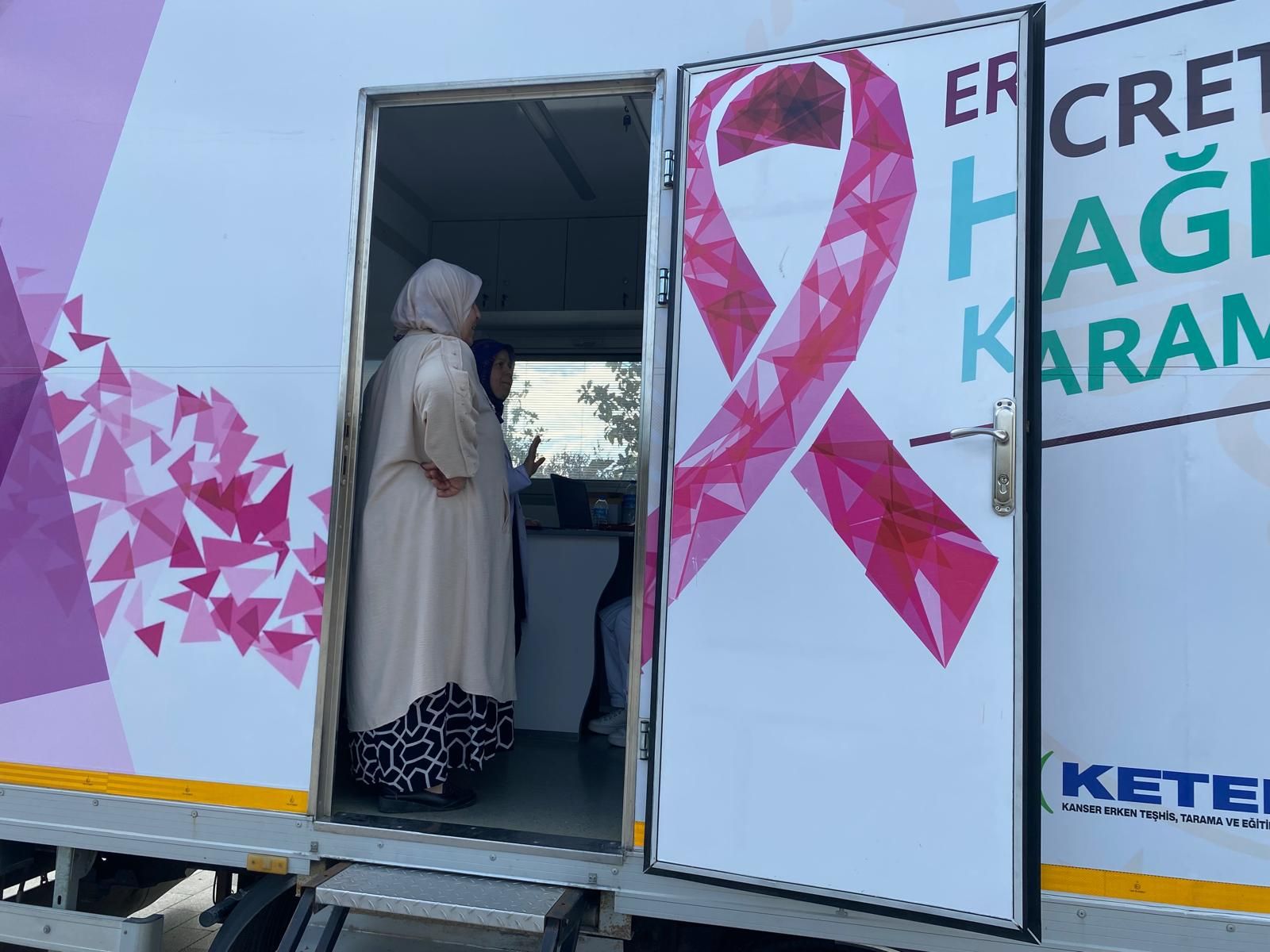 Meydanda konuşlandırılan mobil sağlık tırında, il genelinde yaşayan 40-69 yaş arası kadınlara yönelik ücretsiz meme kanseri taramaları yapıldı.