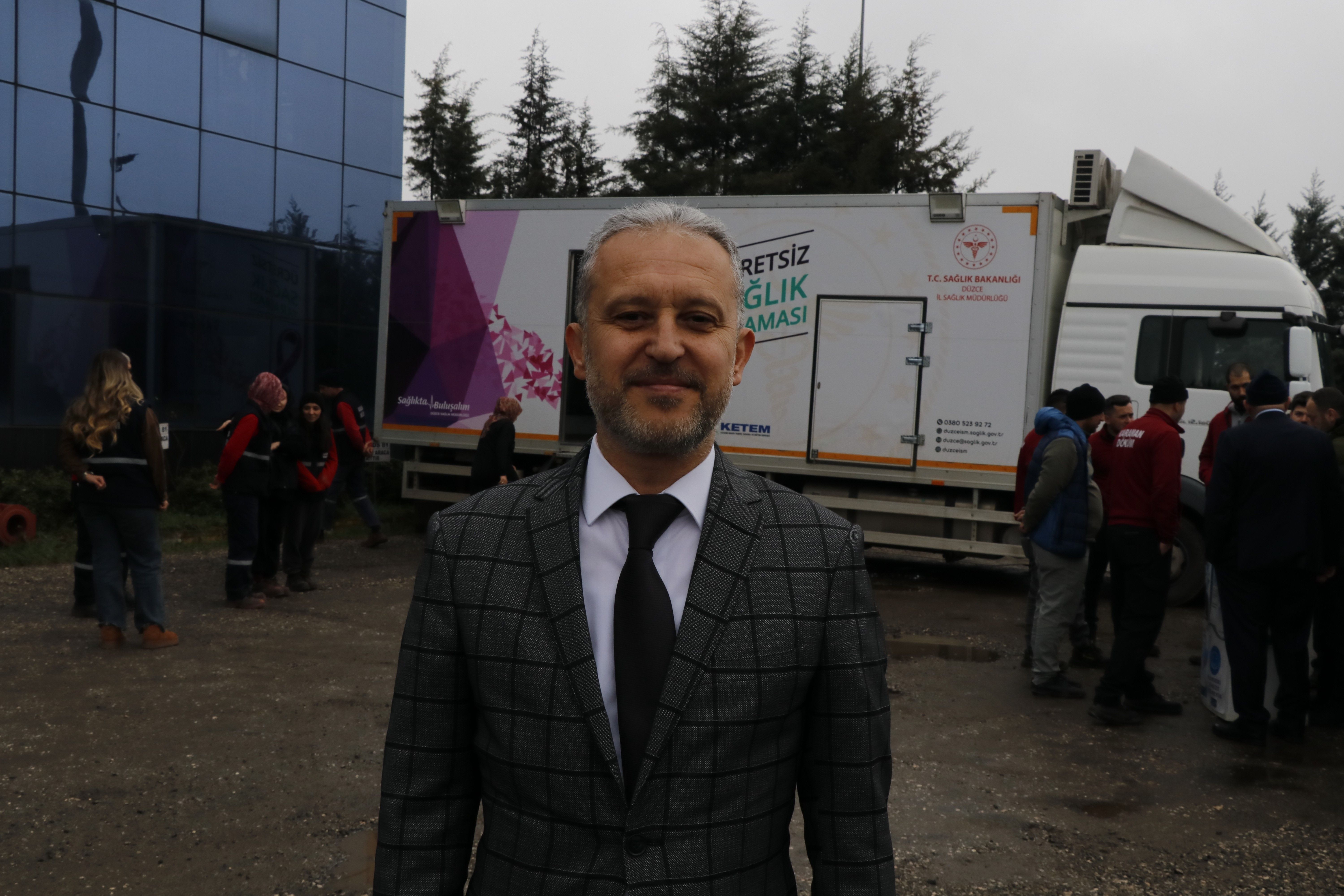 Çalışmaları yerinde inceleyen Düzce İl Sağlık Müdürü Dr. Yasin Yılmaz, Sağlık Bakanı Prof. Dr. Kemal Memişoğlu'nun liderliğinde projeyi hayata geçirdiklerini belirterek, "Düzce'de 15 bine yakın vatandaşımızın tarama programına almış bulunuyoruz. Sağlık taraması programı içinde kanser taraması yapacağız, diyabetle ilgili çalışmalar yapacağız. Diyetisyenimiz, psikologlarımız, doktorlarımız burada olacak; mobil sigara bırakma aracımızda iş yerlerinde olacak. Bu şekilde bütün çalışanlarımızı tarayarak, onların sağlıklarına bir nebze olsun dokunma noktasında çalışma yapmış olacağız. İnşallah hayırlara vesile olur" dedi.