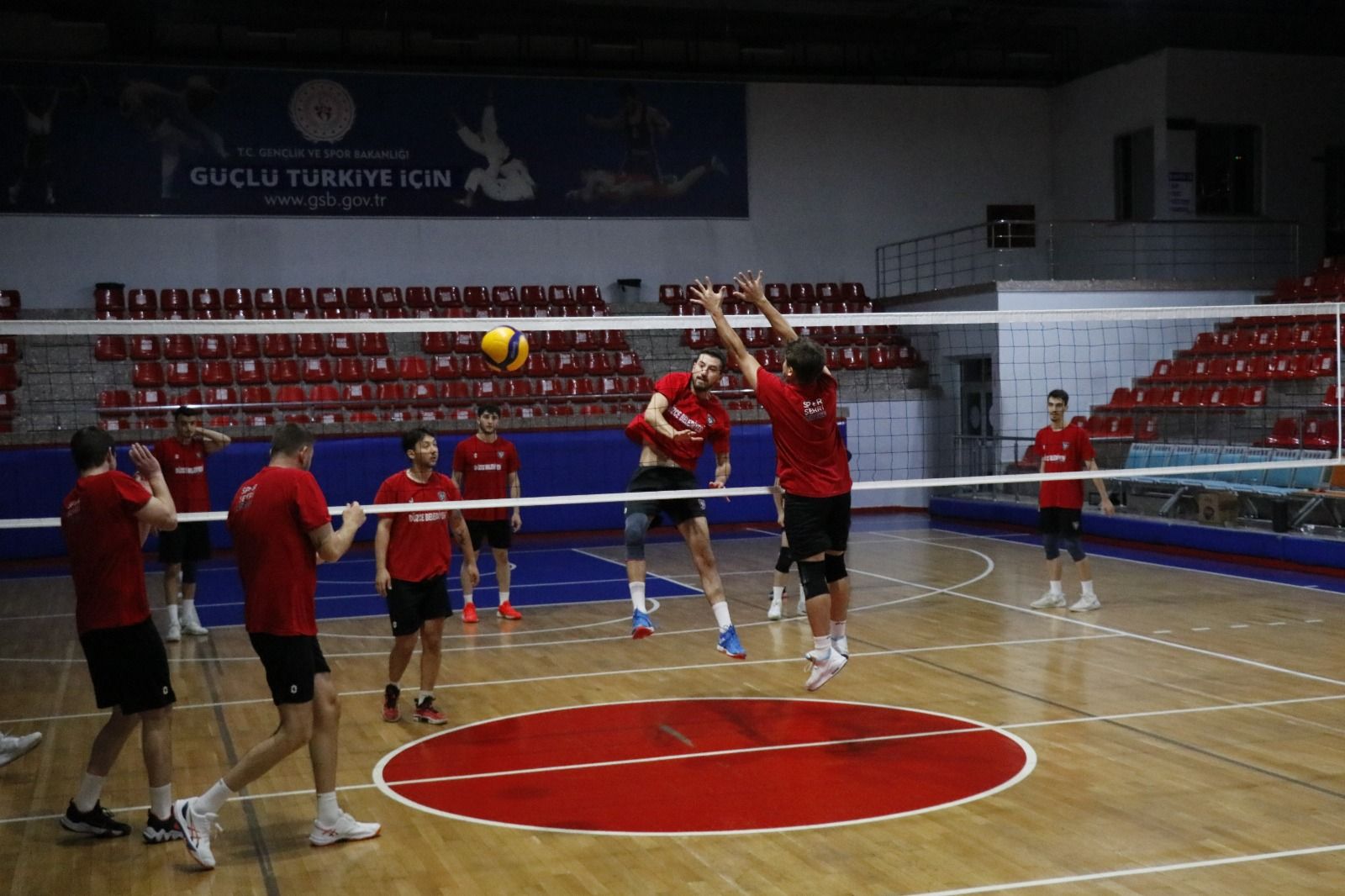 Müsabaka öncesi Düzce Belediyesi Spor Akademisi Voleybol Takımı hazırlıklarını aralıksız sürdürüyor. Taktik ve hücum ağırlıklı devam eden çalışmalarda, oyuncuların hırsı ve isteği dikkat çekti.