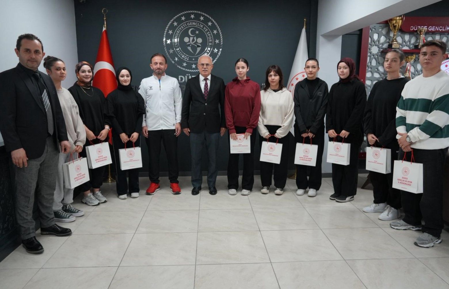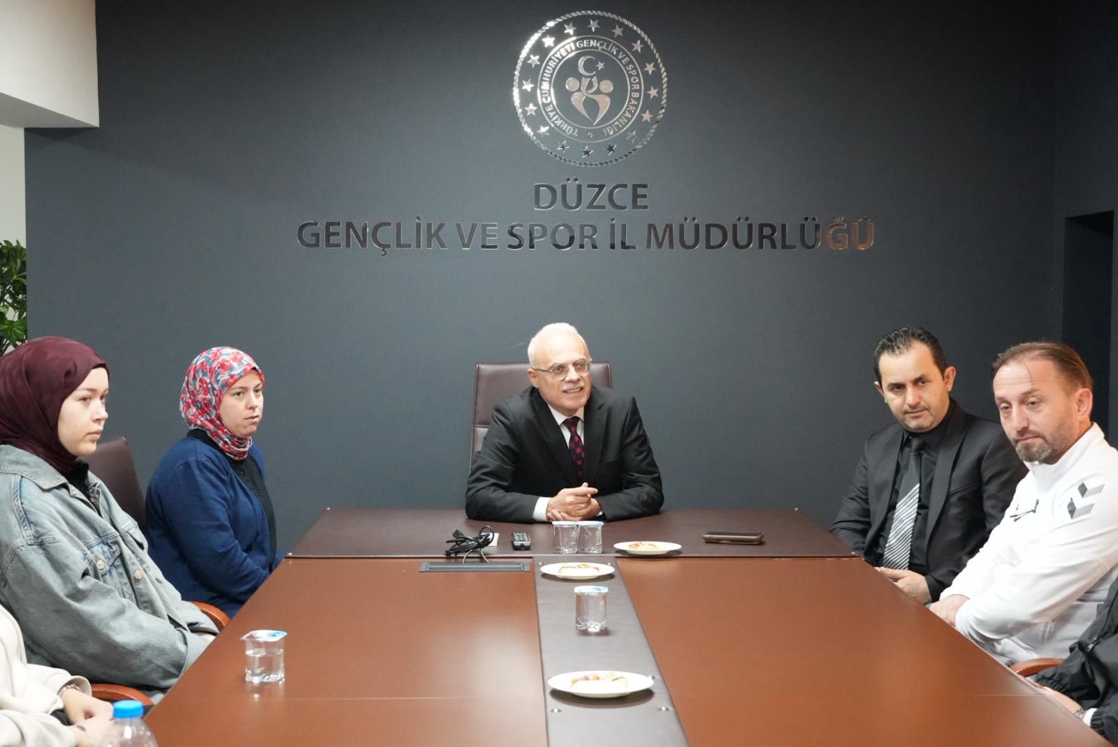 Ziyarette konuşan İl Müdürü Zekeriya Arslantürk, sporcuların elde ettiği başarıların Düzce adına büyük bir onur olduğunu belirterek şu ifadeleri kullandı: