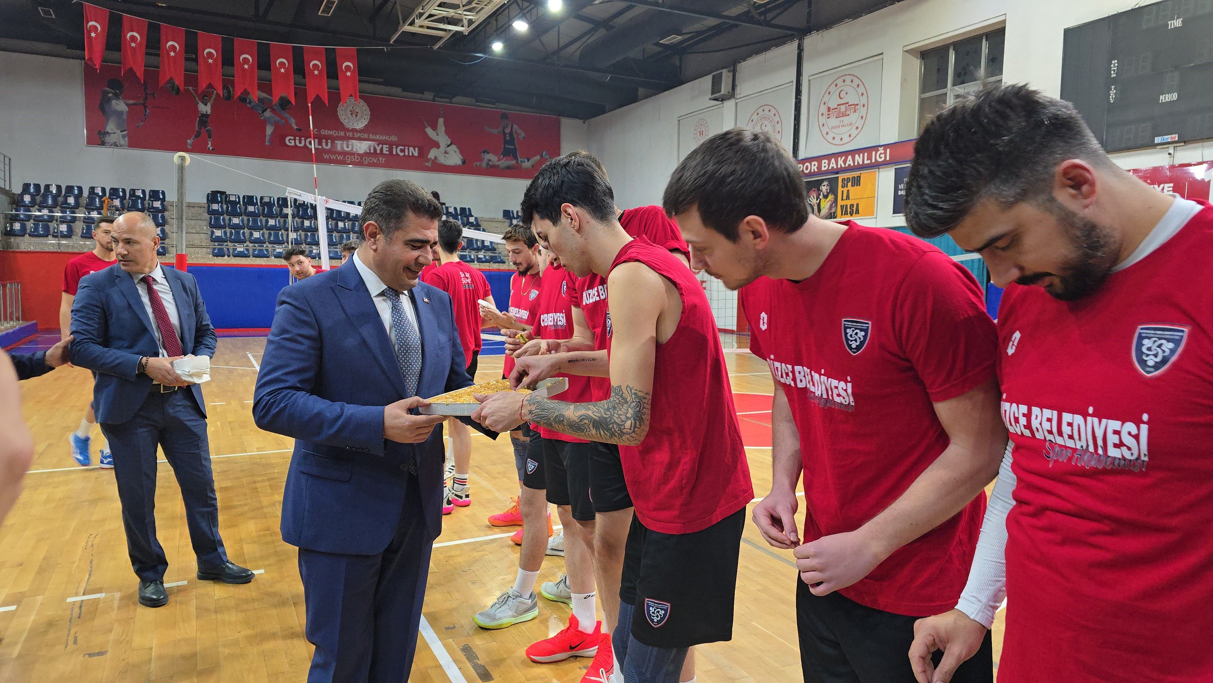 Düzce Valisi Selçuk Aslan, Türkiye Voleybol Federasyonu (TVF) Erkekler 1. Ligi'nde mücadele eden Düzce Belediyesi Spor Akademisi Voleybol Takımı'nı antrenman sırasında ziyaret ederek destek verdi.