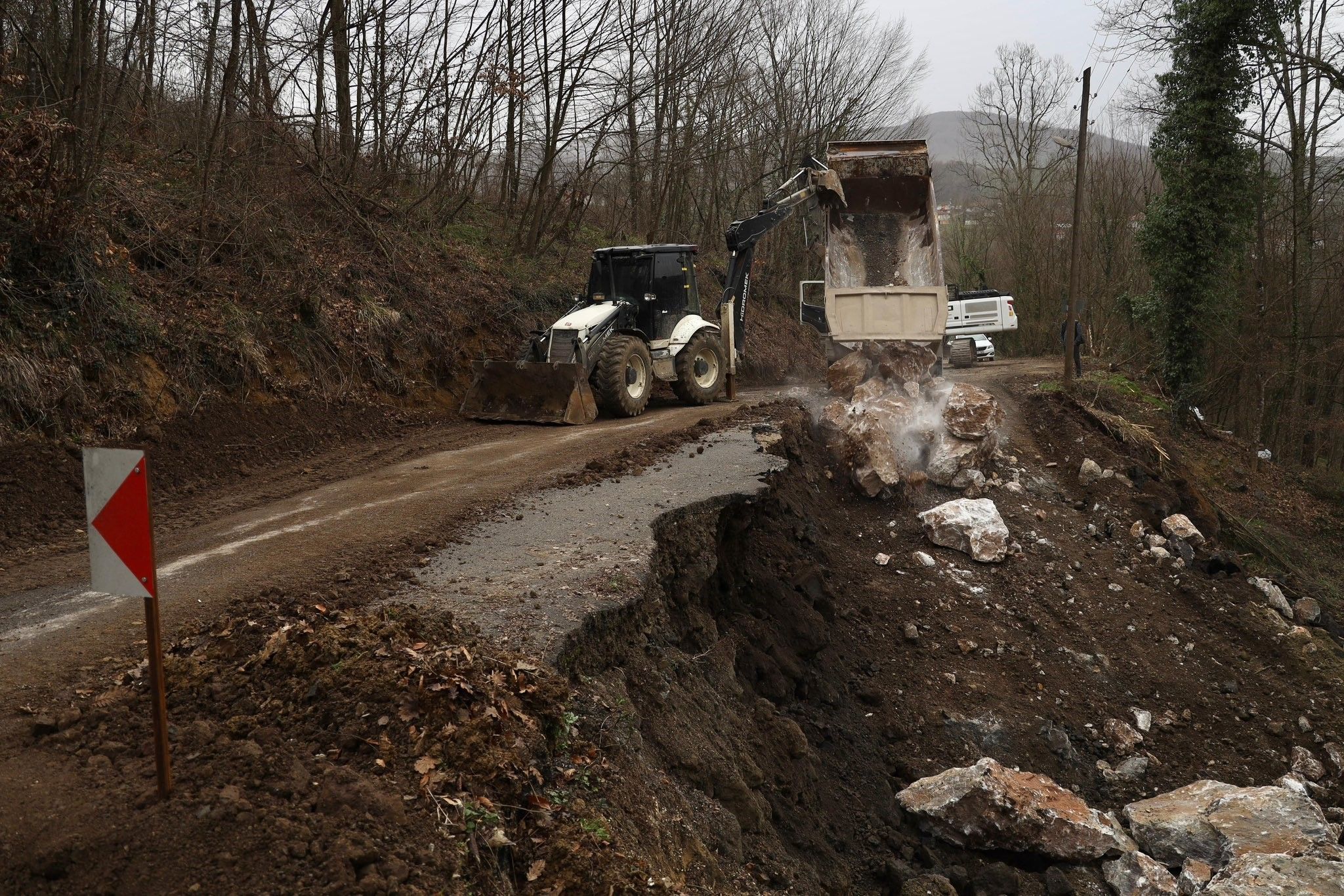 Heyelan nedeniyle risk oluşan alanda zemin stabilitesinin sağlanması ve yeni toprak kaymalarının önüne geçilmesi amacıyla yürütülen çalışmalar kapsamında, iş makineleriyle taş tahkimatı yapılarak dolgu uygulaması gerçekleştiriliyor. Böylece hem yol güvenliğinin artırılması hem de bölgedeki yerleşim alanlarının korunması hedefleniyor.