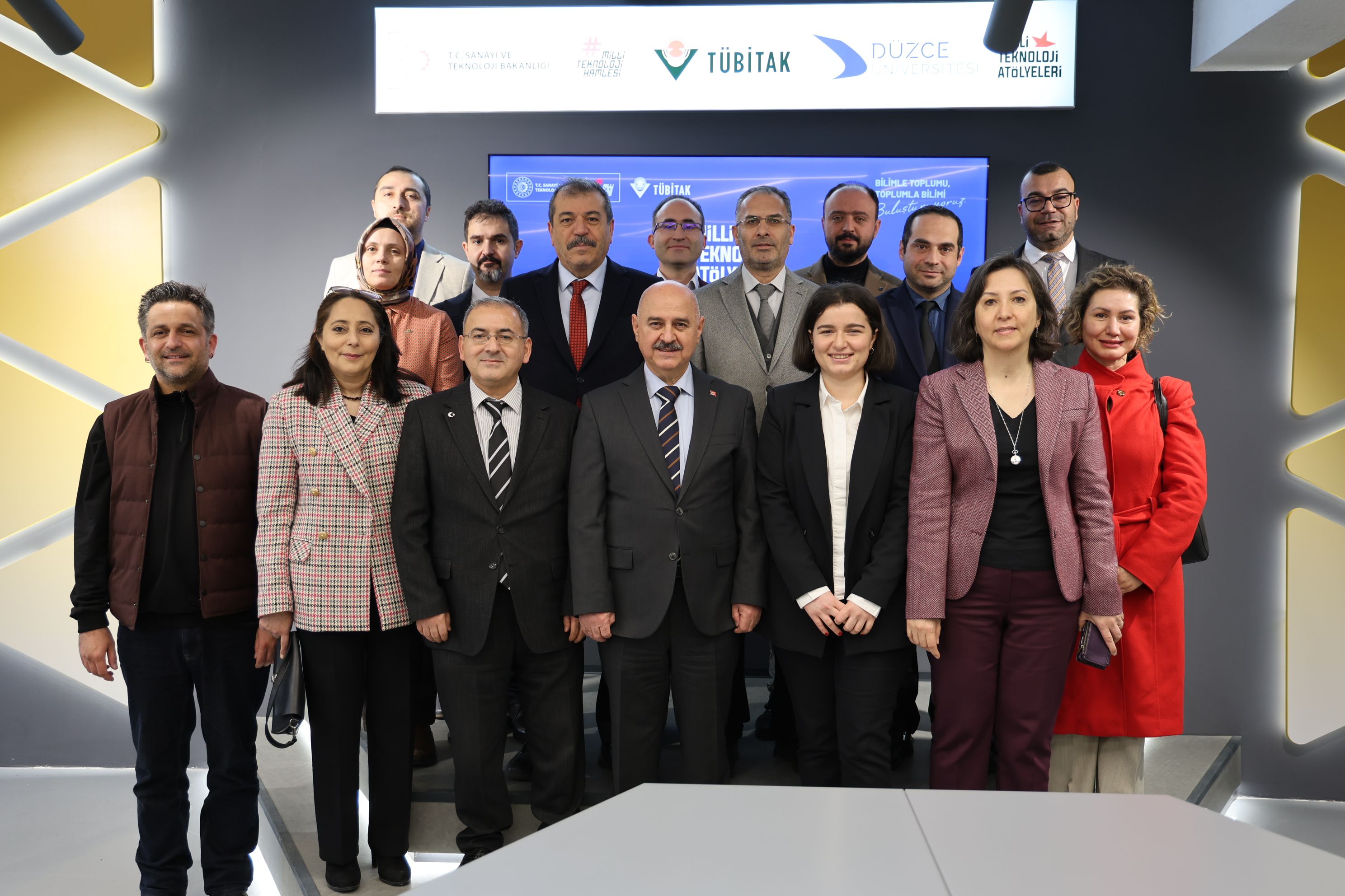 Düzce Üniversitesi Milli Teknoloji Atölyesi’ni; Düzce Üniversitesi Rektörü Prof. Dr. Nedim Sözbir, Rektör Yardımcıları Prof. Dr. Ali Öztürk ve Prof. Dr. Emrah Evren Kara, Genel Sekreter Nihat Yıldız, Araştırma Dekanı Prof. Dr. Emine Tekin, Bilim ve Teknoloji Yarışmaları Koordinatörü ve Düzce Meslek Yüksekokulu Müdürü Prof. Dr. Ali Etem Gürel ile Fakülte Dekanları, Meslek Yüksekokulu Müdürleri, Düzce Üniversitesi akademisyenleri ve öğrencileri ziyaret etti.