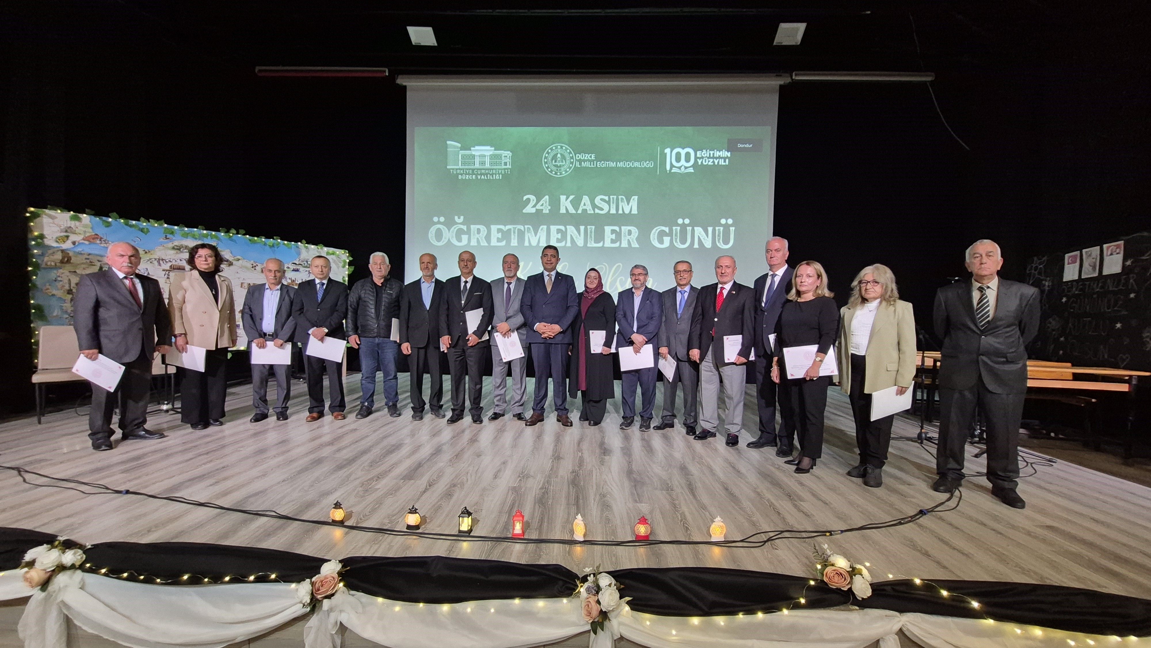 Düzce'de 24 Kasım Öğretmenler Günü dolayısıyla düzenlenen programda emekli olan öğretmenlere üstün hizmet belgeleri verildi.
