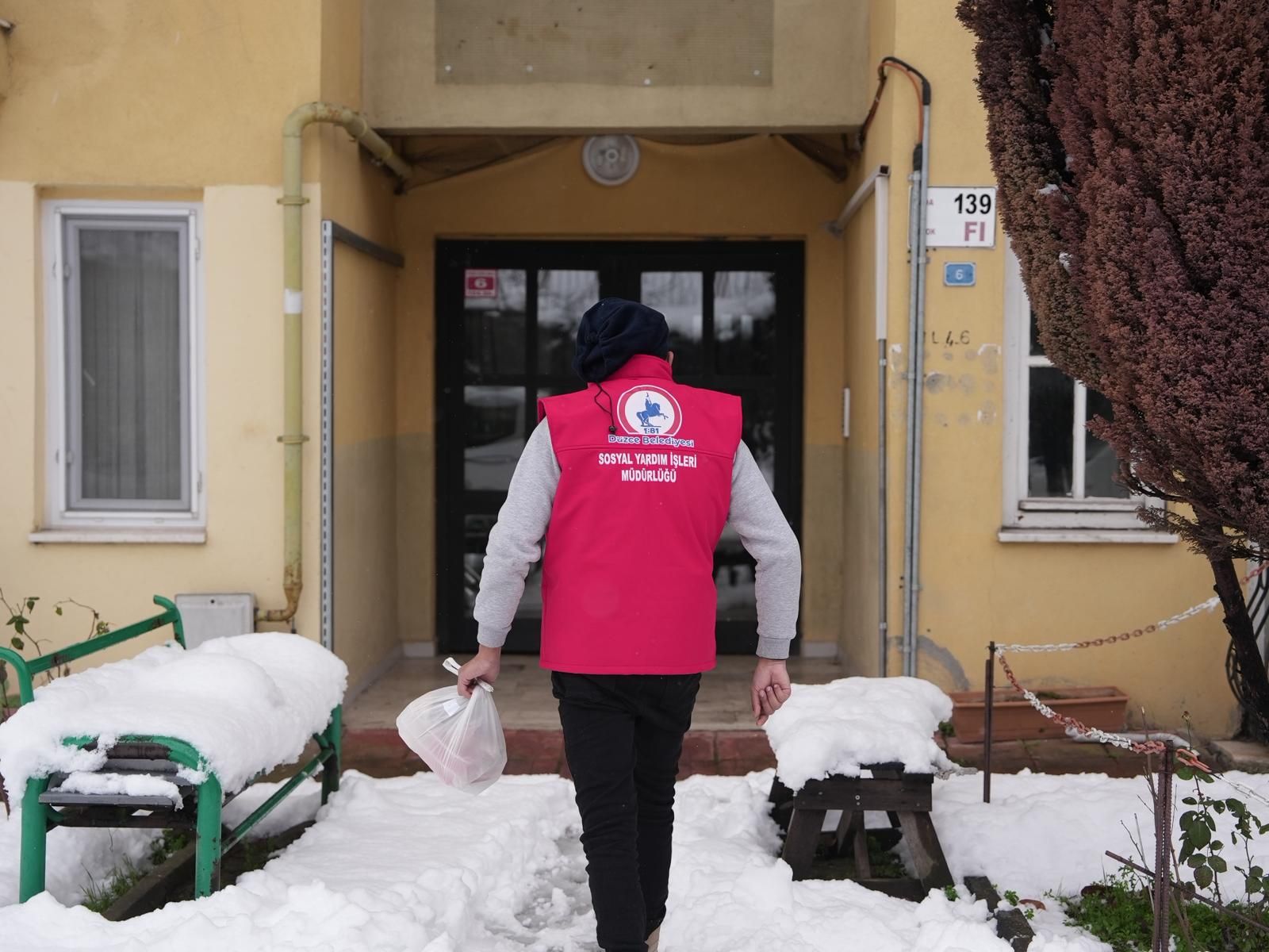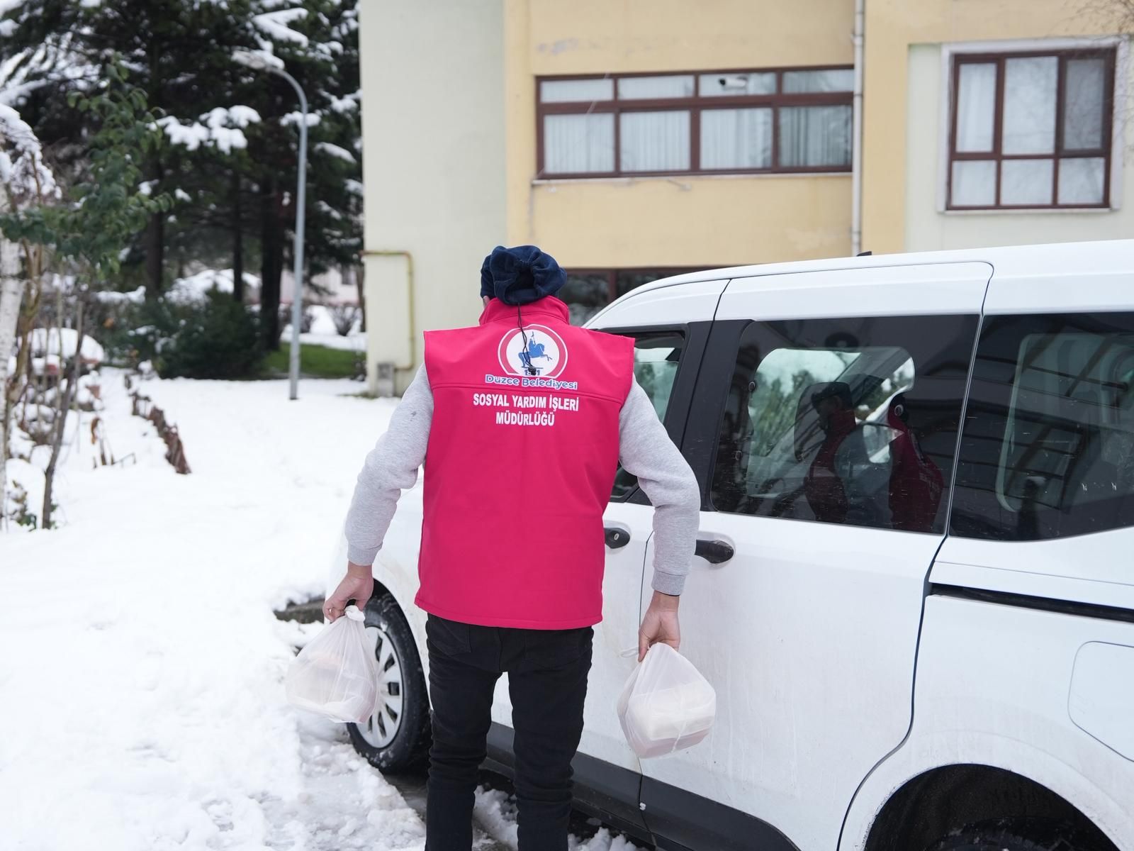 Düzce Belediyesi, sıcak yemek hizmetini kar-kış demeden sürdürerek, ihtiyaç sahiplerine ulaştırıyor. Kapı kapı dolaşarak evlere kadar ulaştırılan yemekler, hem içleri hem de yürekleri ısıtıyor.