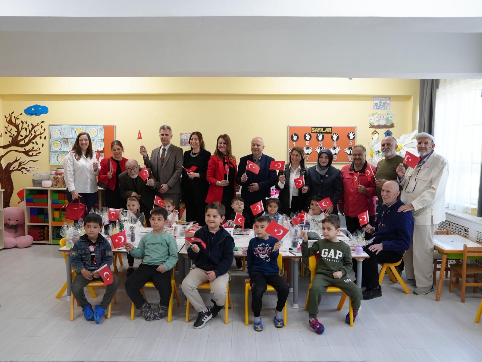 Düzce Belediyesi Ertan Uçar Alzheimer Hastaları Gündüz Bakım Merkezi’nden hizmet alan yaşlı vatandaşlar, Çakırlar Anaokulu’nu ziyaret ederek öğrencilerin 23 Nisan Ulusal Egemenlik ve Çocuk Bayramı’nı kutladı.