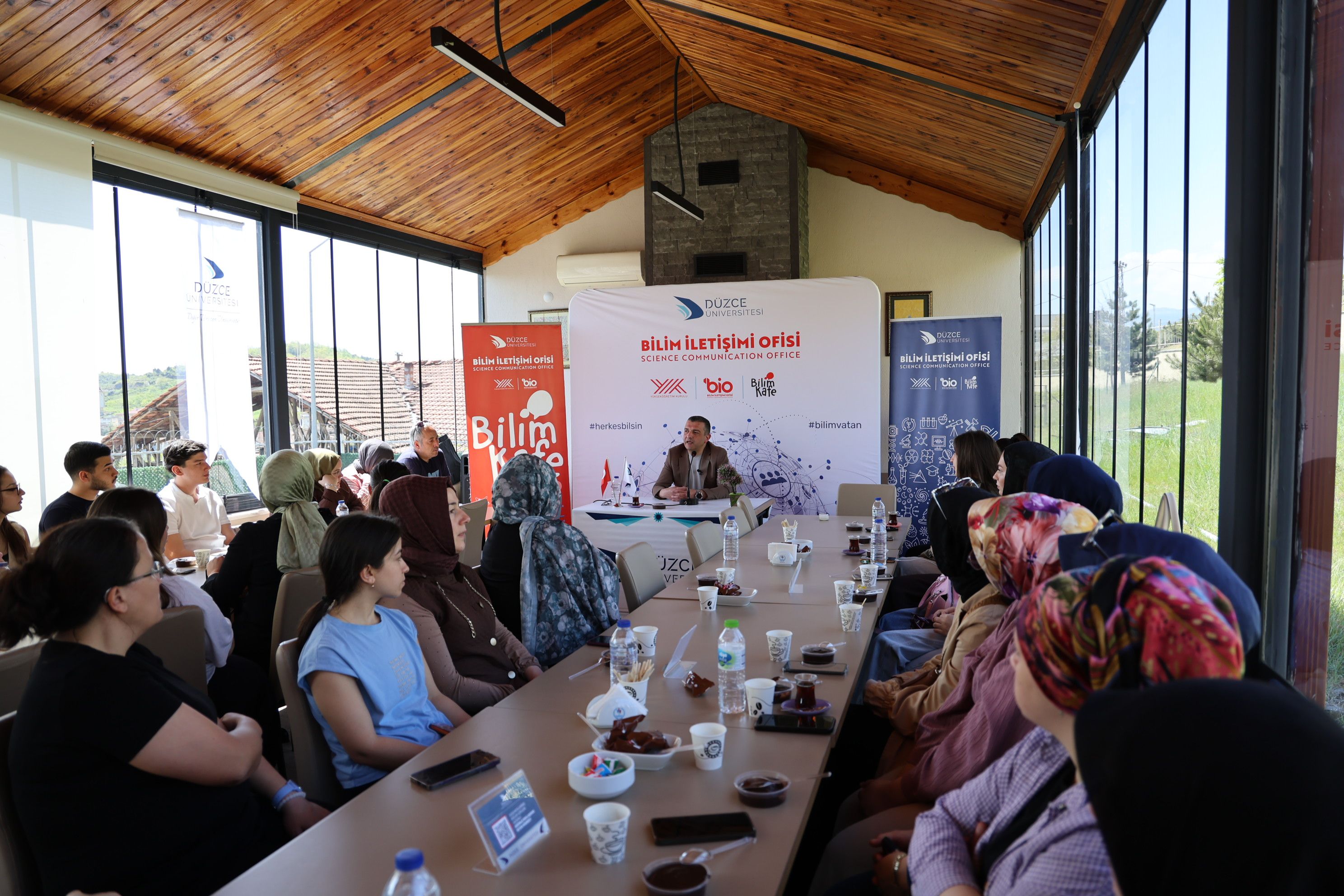 Düzce Üniversitesi Bilim İletişimi Ofisi ve Toplumsal Katkı Koordinatörlüğü tarafından Düzce Gençlik ve Spor İl Müdürlüğü iş birliğiyle düzenlenen ve örnek bilim toplum buluşmalarına dönüşen Bilim Kafe etkinliğinde, deprem bilinci konusu ele alınarak toplumsal farkındalık oluşturuldu.