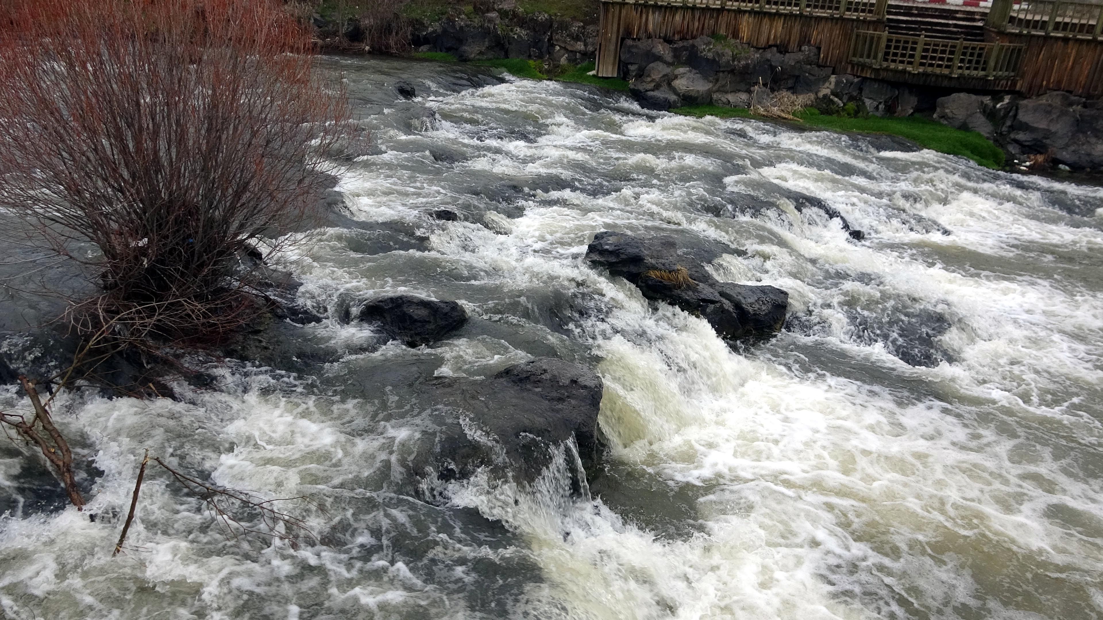 VAN'ın Erciş ilçesinde inci kefalinin üreme göçünün en çok izlendiği Deliçay'da, yoğun yağışlar ve karın erimesi sonucu su seviyesi yükseldi.