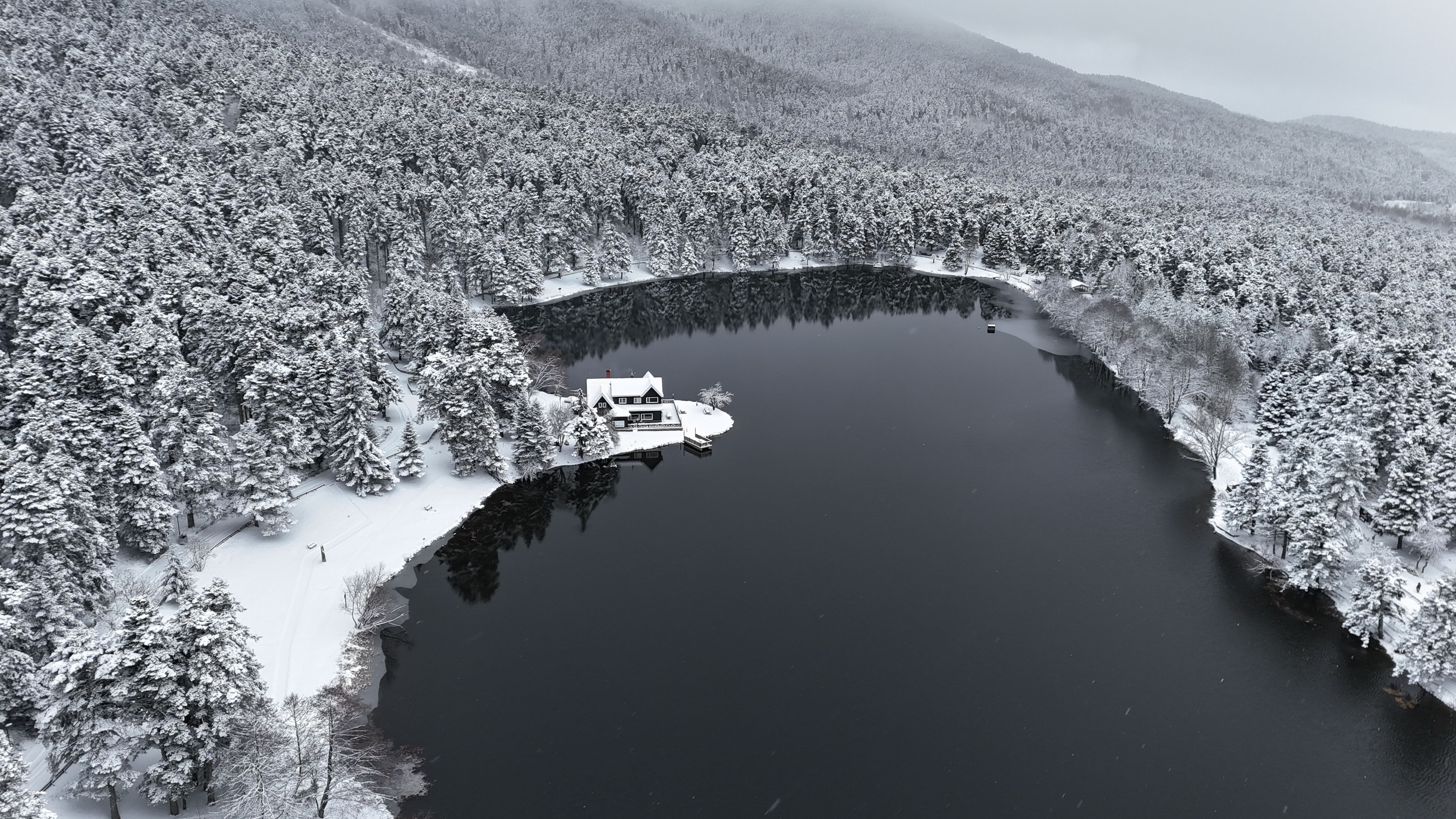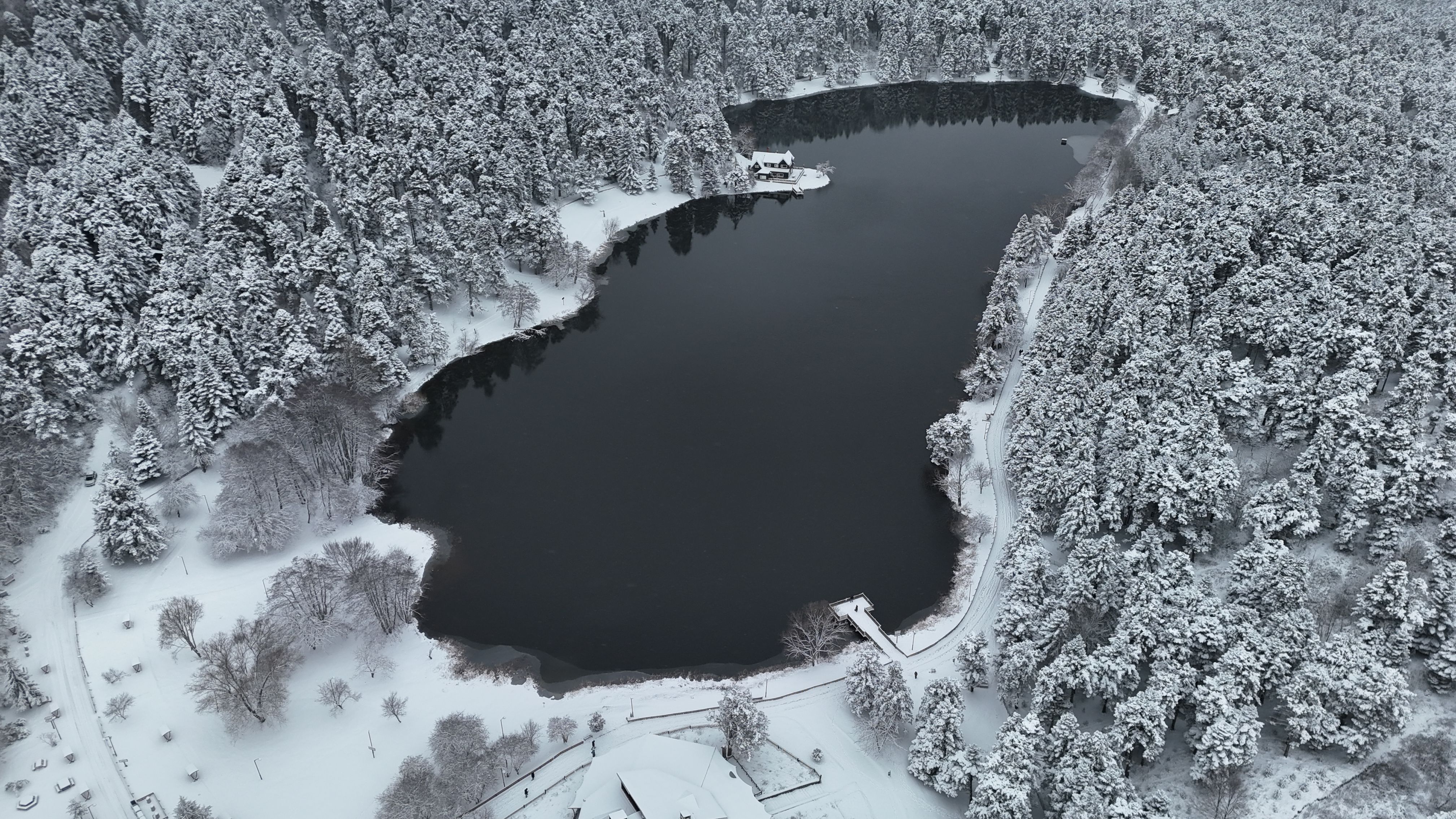 Bolu’da çam ormanlarıyla çevrili Gölcük Tabiat Parkı, kar yağışının ardından beyaz örtüyle kaplandı. Tabiat parkında kar kalınlığı yaklaşık 20 santimetreye ulaştı. Yılın her mevsimi tatilcilerin ilgi odağı olan Gölcük’ün karla kaplı çam ormanlarının göl ile bütünleşmesi eşsiz manzaralar oluşturdu. Soğuk havaya rağmen tabiat parkına gelen tatilciler, göl çevresinde yürüyüş yapıp iskele üzerinde fotoğraf çekti. Manzara dronla görüntülendi.