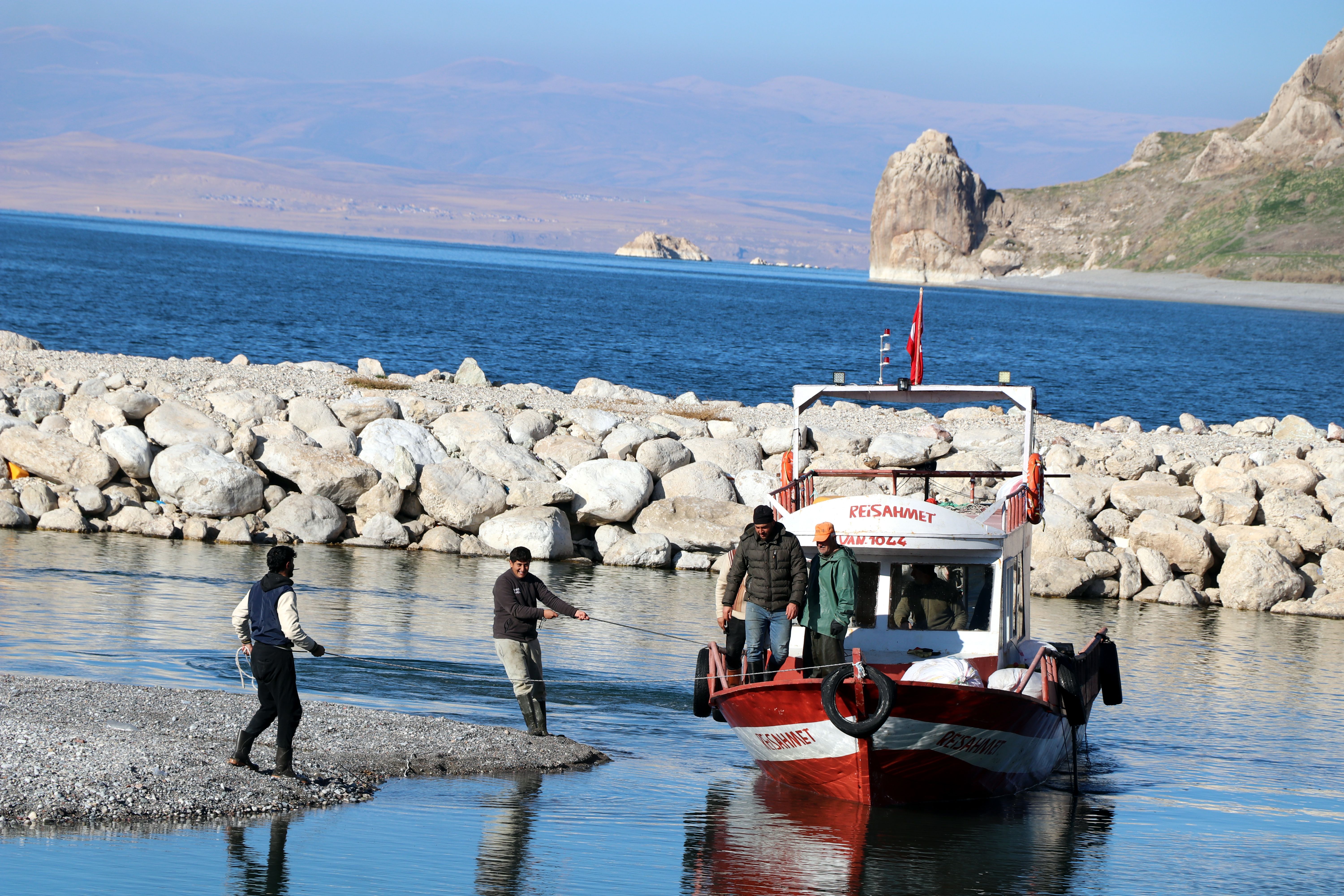 VAN'ın Tuşba ilçesi Yeşilsu Mahallesi'ndeki balıkçı limanı, yağış miktarındaki azalma ve sıcaklığa bağlı buharlaşmadan, olumsuz etkilendi. Limandaki su seviyesinin düşmesi, balıkçıların işini zorlaştırıyor. 2 teknenin karaya oturduğu limana yanaşmaya çalışan 1 balıkçı teknesi de itilerek ve iplerle çekilerek kıyıya getirildi. Balıkçı Ahmet Çikla (50), teknelerinin zarar gördüğünü, limanın derinleştirilmesi için yetkililerden yardım beklediklerini söyledi.