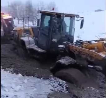 BİTLİS'in Ahlat ilçesine bağlı Nazik köyü yolunda karla mücadele çalışması yapan İl Özel İdaresi’ne ait iş makinesi çamura saplandı. Bölgeye sevk edilen ekipler, iş makinesini ve operatörü kurtardı.