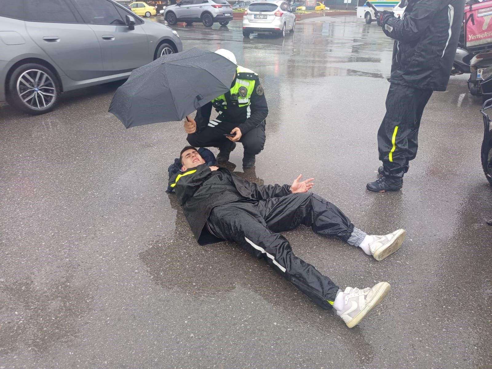 Yaralı kuryeye ilk müdahaleyi çevredeki vatandaşlar yaparken, olay yerine gelen Ereğli İlçe Emniyet Müdürlüğü’ne bağlı trafik tescil komiseri örnek bir davranış sergiledi. Komiser, yaralı kuryenin başında 112 Acil Sağlık ekipleri gelinceye kadar şemsiye tutarak bekledi.