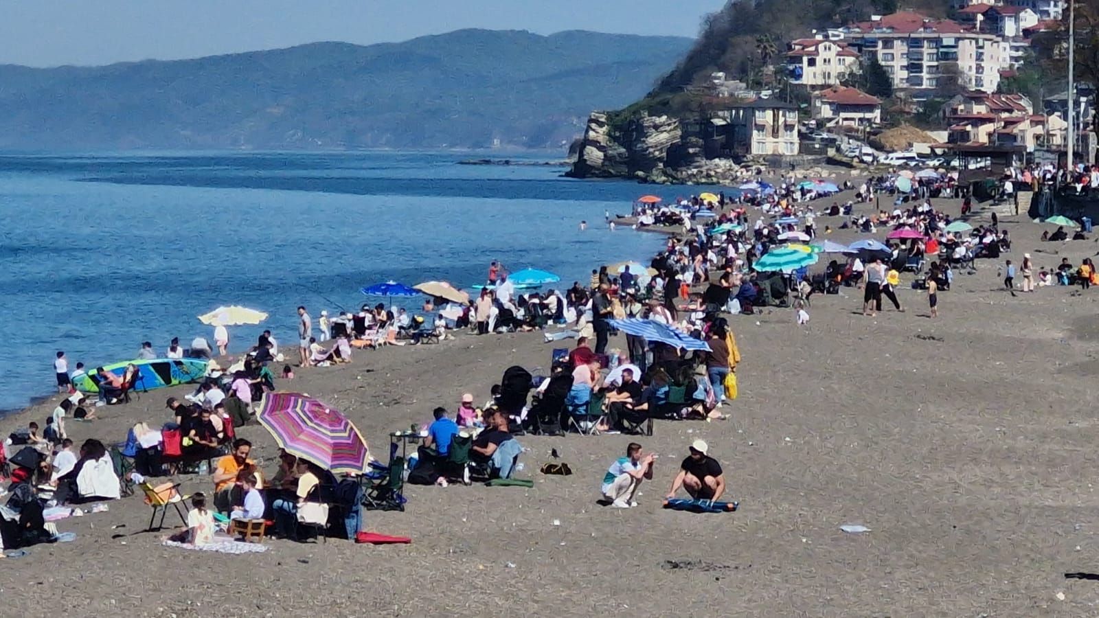 DÜZCE’nin Akçakoca ilçesinde hafta sonu güneşli havayı fırsat bilenler Çuhallı Plajı’na akın etti. Bazı vatandaşlar piknik yaparken, bazıları ise denize girdi.