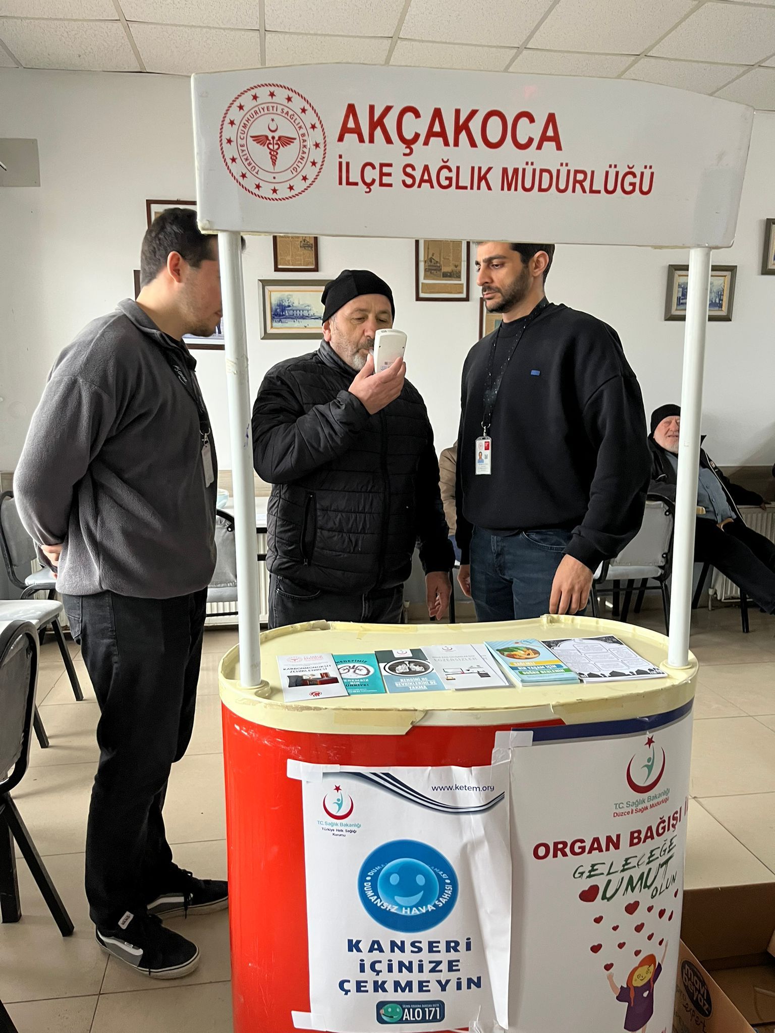İlçenin önemli ibadet merkezlerinden Akçakoca Merkez Camii içerisinde kurulan farkındalık standında vatandaşlara çeşitli sağlık konularında bilgilendirme yapıldı. Ramazan ayı boyunca özellikle sağlıklı beslenme, kronik hastalığı bulunan bireylerin oruç tutarken dikkat etmesi gereken hususlar, tansiyon ve şeker hastalığı gibi konularda bilgilendirici broşürler dağıtıldı.