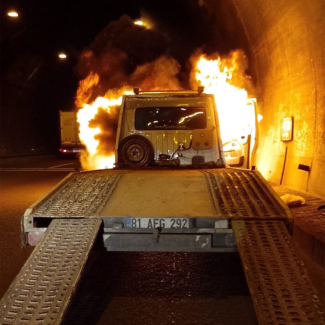 Yangın, TEM Otoyolu Bolu Dağı Tüneli mevkiinde meydana geldi. Edinilen bilgilere göre, 81 AFG 292 plakalı oto kurtarıcı, üzerinde araç taşıdığı sırada kaputundan dumanlar yükselmeye başladı. Durumu fark eden sürücü, aracı yol kenarına çekerek, 112 Acil Çağrı Merkezi'ni aradı. İhbar üzerine olay yerine itfaiye ekipleri sevk edildi. Kısa sürede bölgeye ulaşan ekiplerin müdahalesiyle yangın kontrol altına alınarak söndürüldü. Yangın sonucu oto kurtarma aracında maddi hasar meydana geldi.