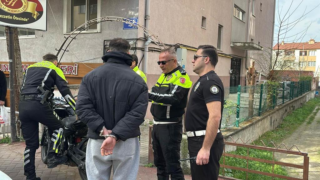 Bolu İl Emniyet Müdürlüğü Trafik Tescil ve Denetleme Şube Müdürlüğü ekipleri, trafiği tehlikeye düşüren sürücülere yönelik çalışmalarını sürdürüyor. Sosyal medya hesabında motosikletiyle ön kaldırdığı ve plakasız gezdiği görüntüleri paylaşan 35 YIK 50 plakalı motosikletin sürücüsü D.M.K. (22), sabah saatlerinde trafik polisinin takibi sonucu Bahçelievler Mahallesi'nde yakalandı. Önceki gün polisten kaçan ve bugün ara sokakta yakalanan motosiklet sürücüsü D.M.K.'nin motoru bağlandı. Ekipler, Kültür Mahallesi'nde ise aynı gerekçelerle aradığı 06 CZU 282 plakalı motosiklet sürücüsü O.U.E.'yi yakaladı. İki sürücünün de ehliyetine, 'sağlık durumlarının yerinde olup olmadığı tespiti' gerekçesiyle el konuldu. Ayrıca yeniden ehliyetlerini almak için psikoloğa başvurmaları gerektiği öğrenildi. Motosikletleri, oto kurtarıcı yardımıyla yediemine çekilen sürücüler, savcılık kararıyla gözaltına alındı. Emniyetteki işlemleri tamamlanan D.M.K. ve O.U.E. adliyeye sevk edildi.