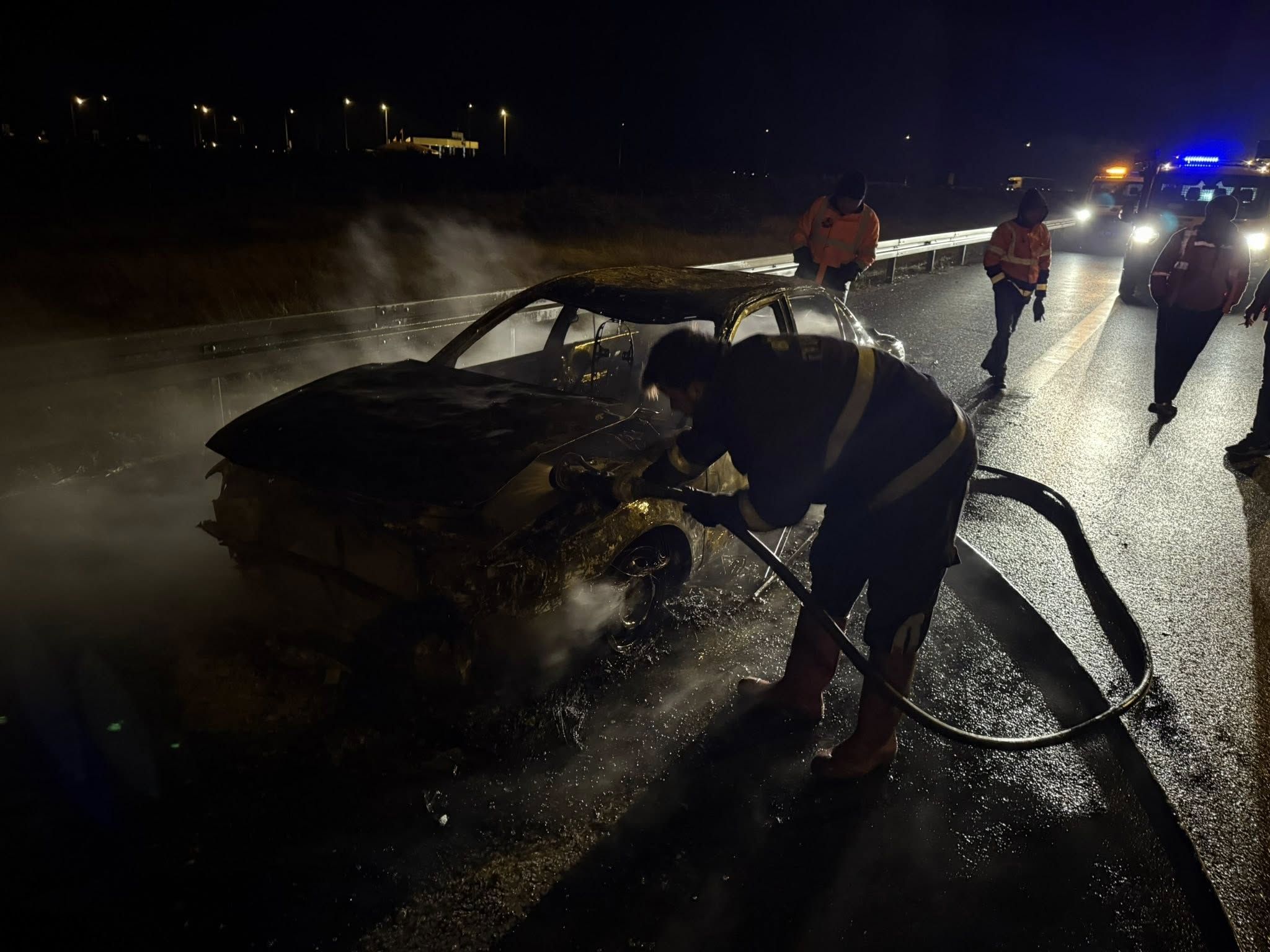 BOLU’da Anadolu Otoyolu’nda seyir halindeyken alev alan otomobil, yangında kullanılamaz hale geldi.