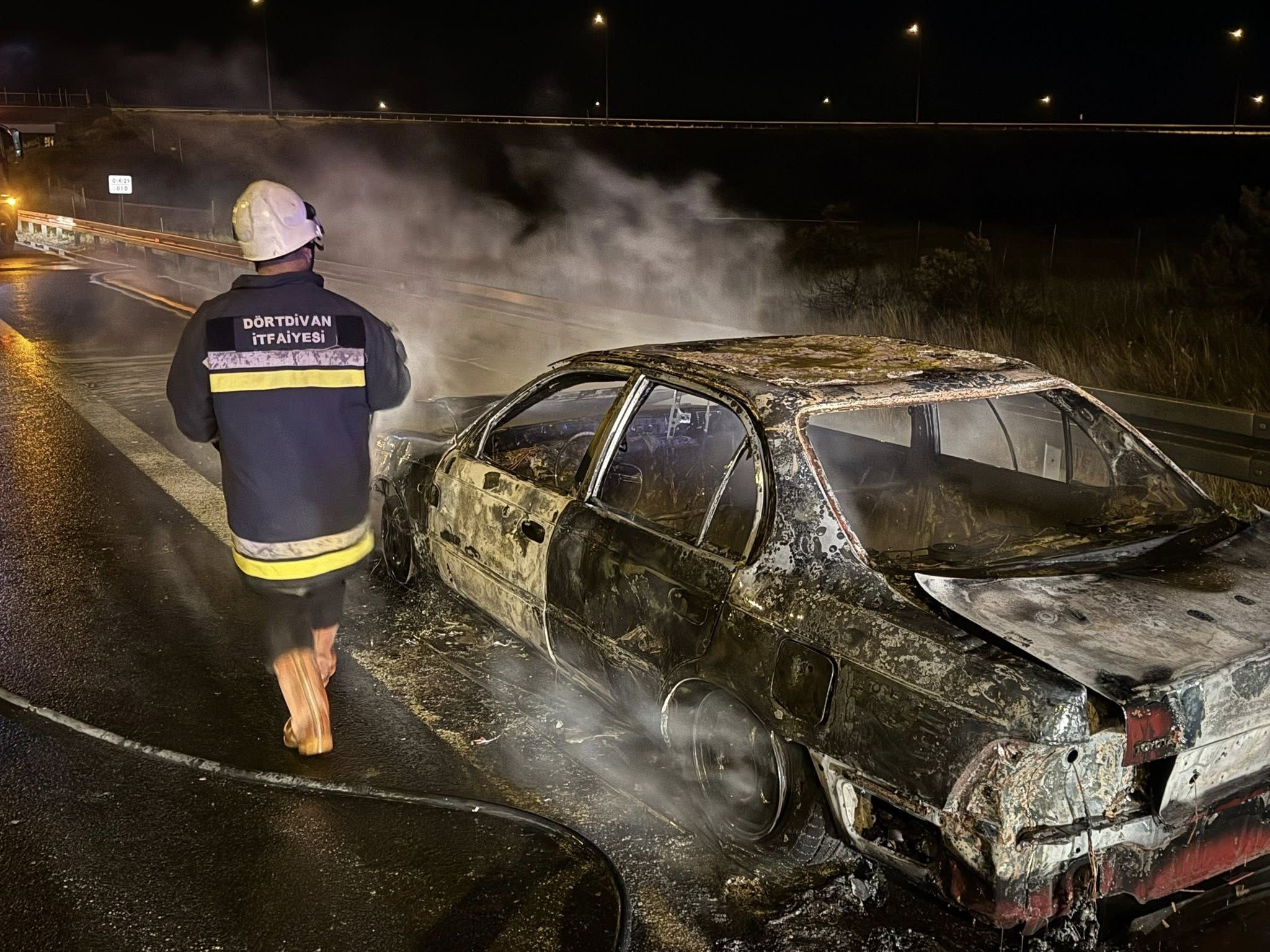 Anadolu Otoyolu Ankara istikameti Dörtdivan gişeleri mevkiinde saat 00.30 sıralarında, hareket halindeki 41 RP 495 plakalı otomobil, alev aldı. Sürücü, otomobilini sağ şeride çekerek itfaiyeyi arayıp, yardım istedi. Otomobildeki yangın, bölgeye gelen Dörtdivan Belediyesi İtfaiye Amirliği ekibi tarafından söndürüldü. Otomobil kullanılamaz hale gelirken, yangınla ilgili inceleme başlatıldı.