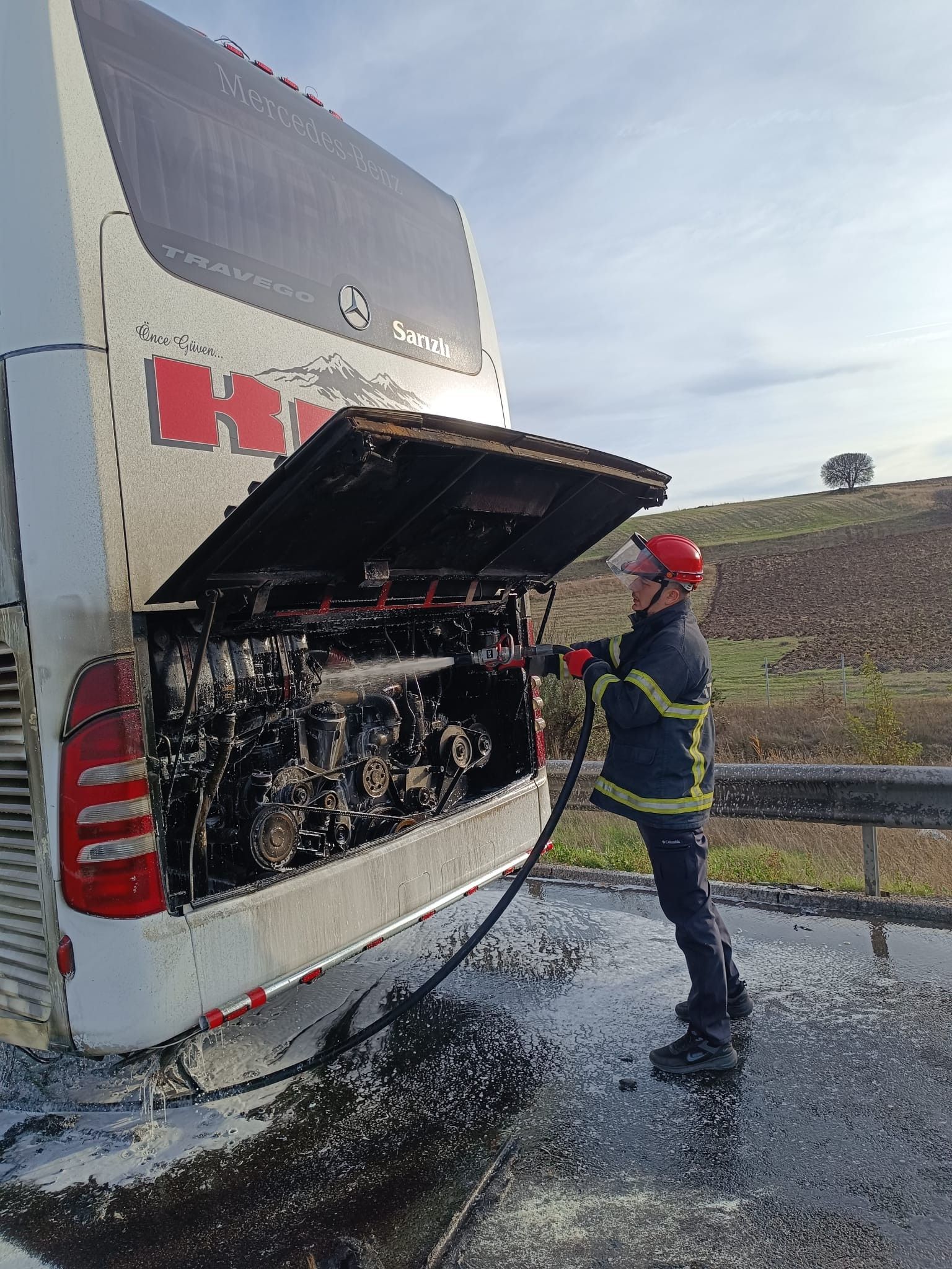 Olay, TEM Otoyolu'nun Bolu geçişinde Yeniçağa ilçesi mevkiinde meydana geldi. Edinilen bilgiye göre, Ankara yönüne seyreden yolcu otobüsünün motor kısmından dumanlar yükselmeye başladı. Durumu fark eden sürücü, aracı emniyet şeridine çekip 112 Acil Çağrı Merkezi'ni aradı. İhbarla kısa sürede bölgeye gelen itfaiye ekiplerince söndürülen yangında aracın motor kısmında hasar meydana geldi. Yangının çıkış nedeni araştırılıyor.