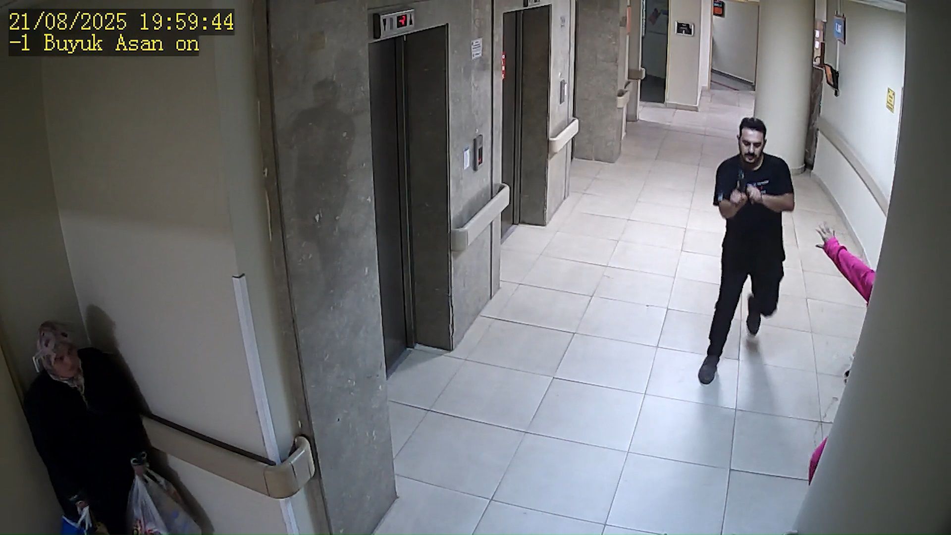 SAKARYA'da Enes S.'nin (32), boşanma aşamasındaki eşi Y.G.S.'yi (29) çalıştığı hastanede kovalayıp, ardından tabanca ile vurarak yaraladığı olaya ilişkin kamera görüntüleri ortaya çıktı.