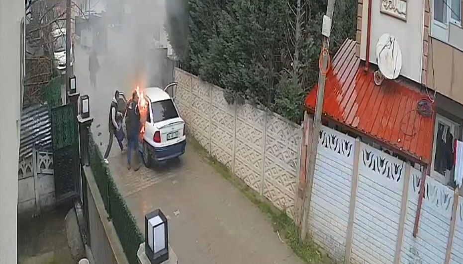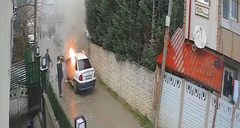 SAKARYA’nın Arifiye ilçesinde park halinde alev alan otomobildeki yangın, çevredekiler tarafından söndürüldü. O anlar, güvenlik kamerasına yansıdı.