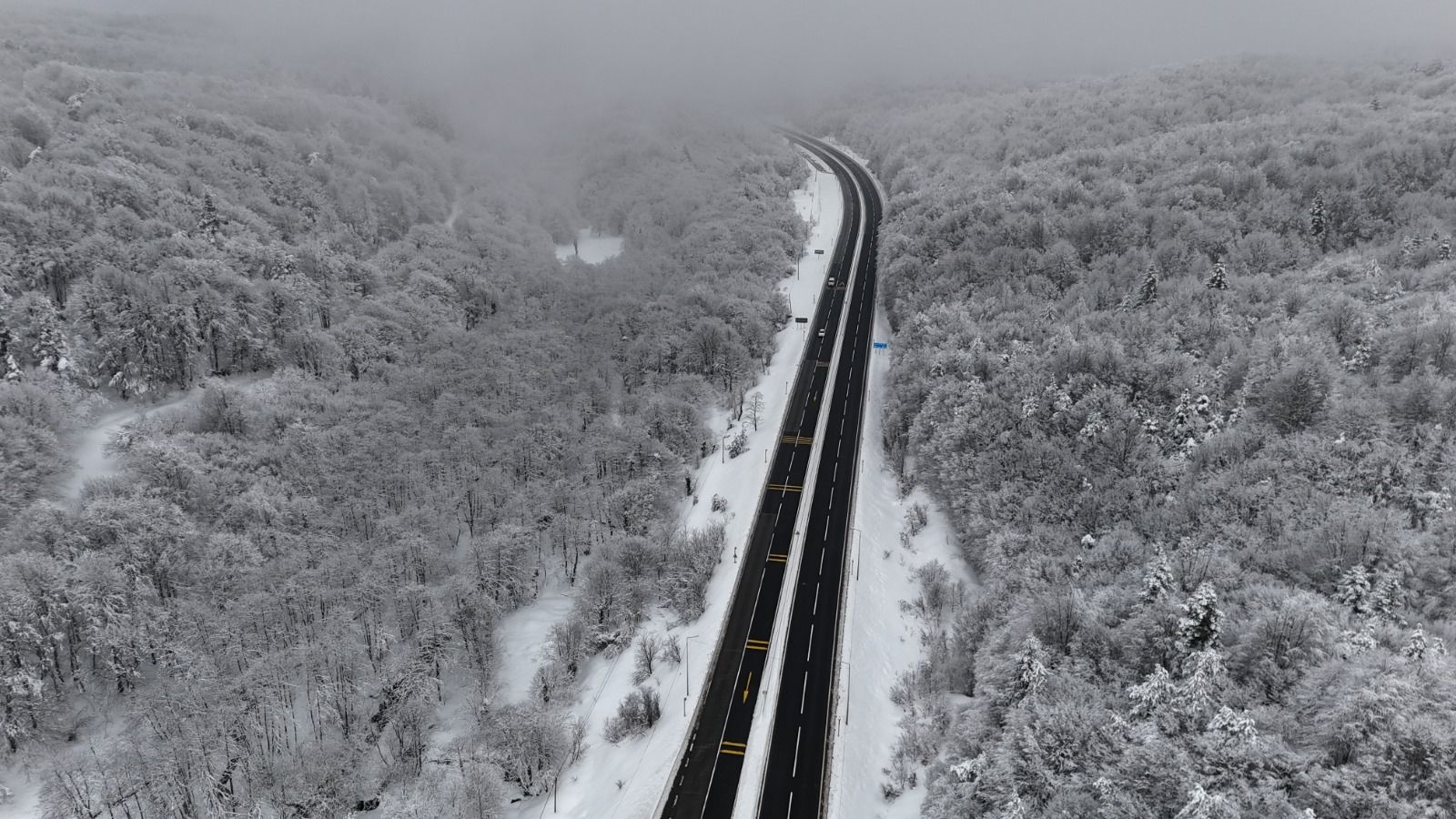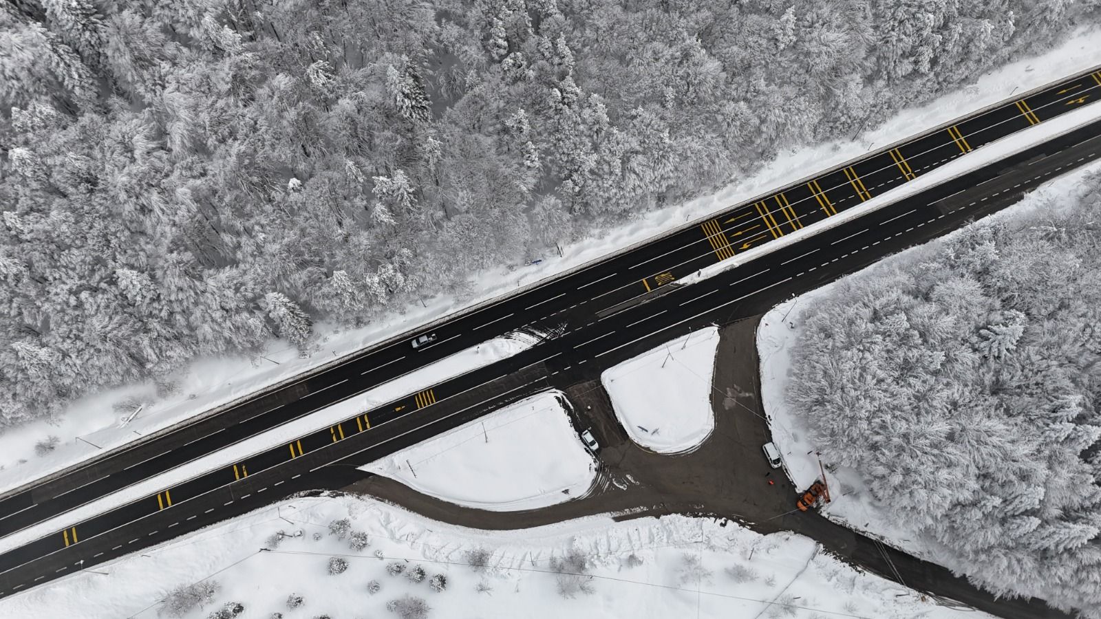 Bolu Dağı'nın D-100 kara yolu geçişinde kar yağışı sonrası beyaz örtü oluştu. Çam ormanlarıyla çevrili Bolu Dağı da beyaza büründü. Karla kaplı ormanlar dronla görüntülendi, araçların sağlı sollu ormanlar arasından geçtiği görüldü.