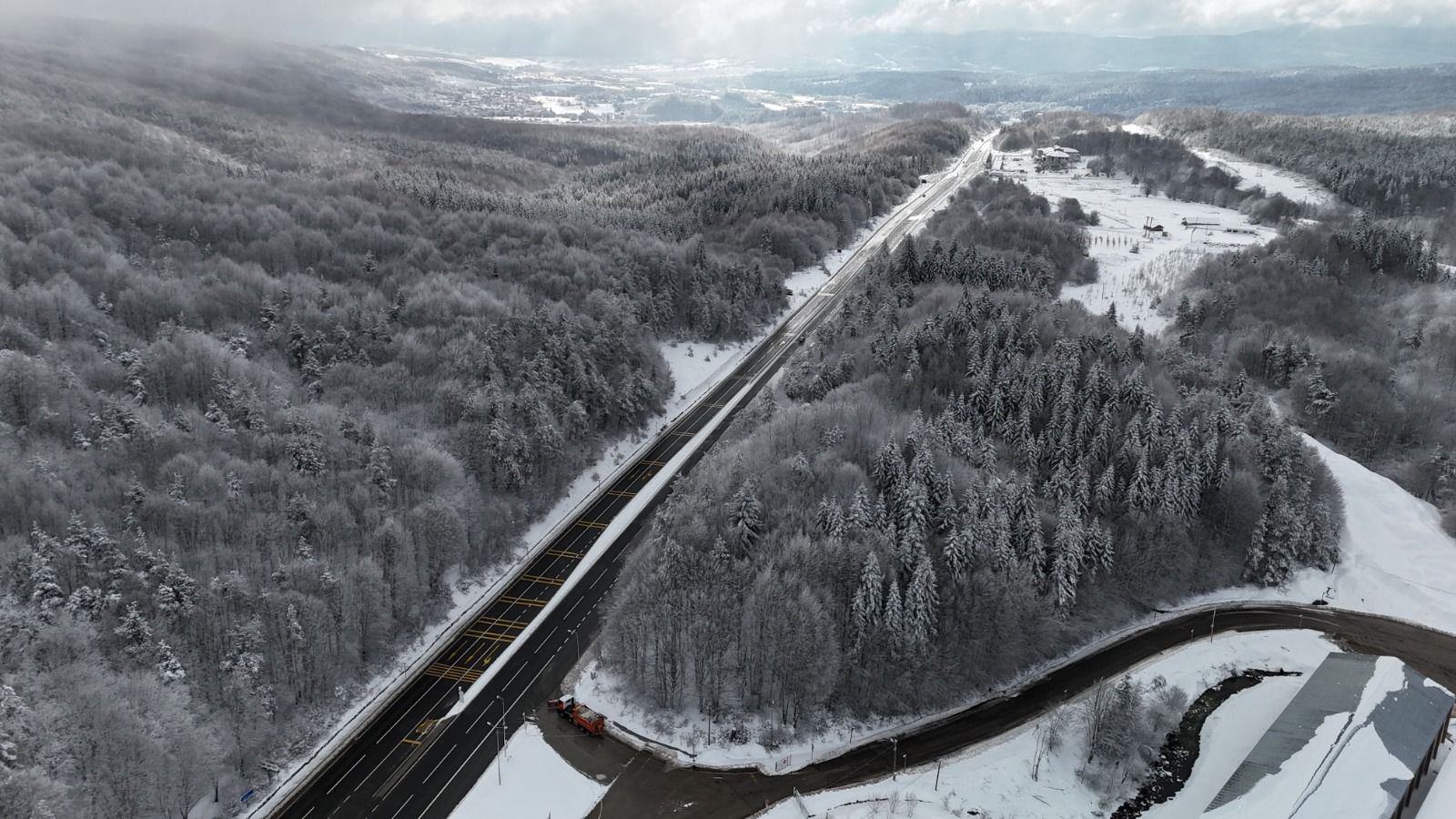 BOLU Dağı'nın D-100 kara yolu geçişinde aralıklarla etkili olan kar yağışının ardından yeşil alanlarda kar kalınlığı yaklaşık 10 santime ulaştı. Karla kaplı Bolu Dağı, dron ile görüntülendi.