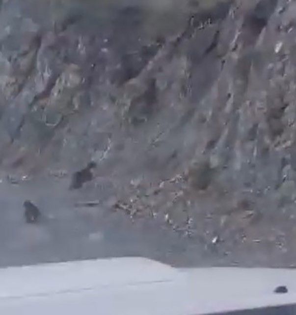 Olay, Bolu’nun Mengen ilçesinde ormanlık alanında meydana geldi. Yol kenarında yiyecek arayan anne ayı ile yavrusu, aniden karşılarına çıkan pikabı görünce korkuya kapıldı. Kaçacak yer arayan ayılar, aracın önünde metrelerce koşarak ardından dimdik yamacı tırmandı. Sonrasında ayılar gözden kayboldu. Cep telefonu ile kayda alınan görüntülerde, yavru ayının annesini takip ederek zorlu arazide hızla yukarıya çıkması dikkat çekti. O anlar sosyal medyada da büyük ilgi gördü.