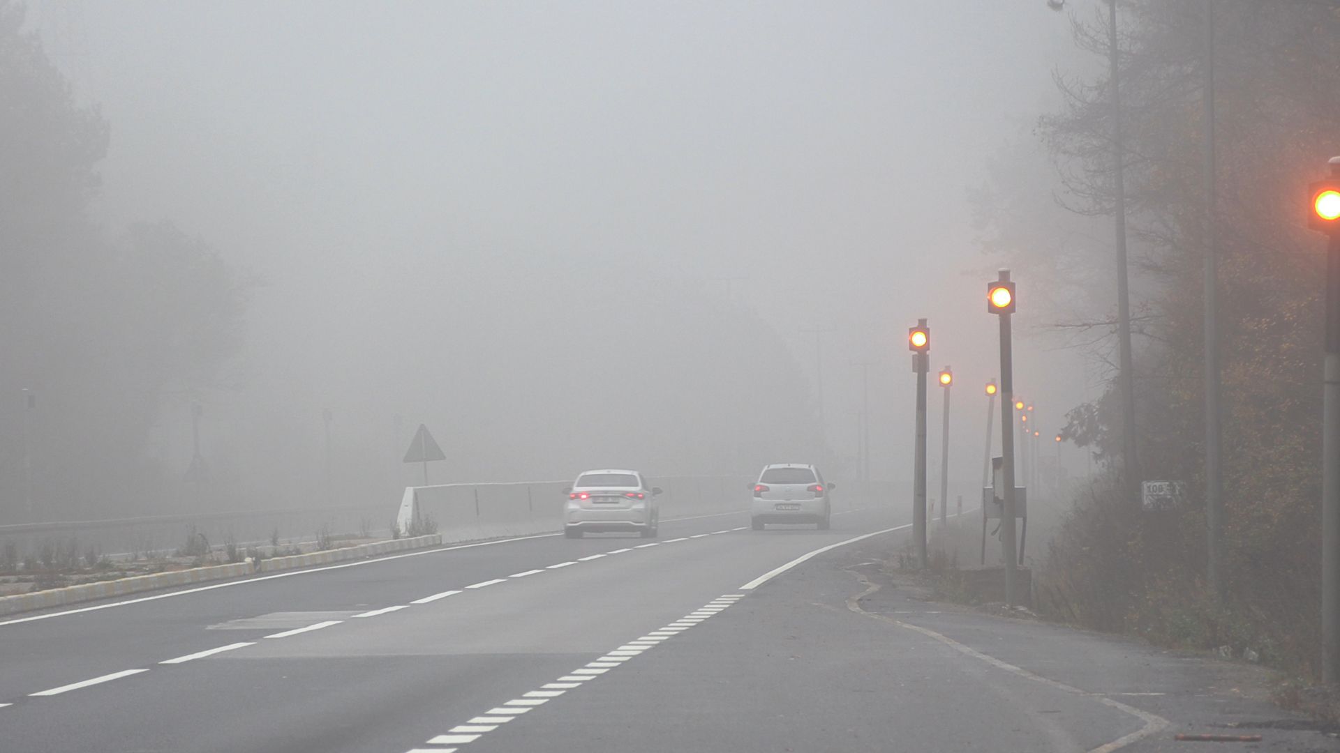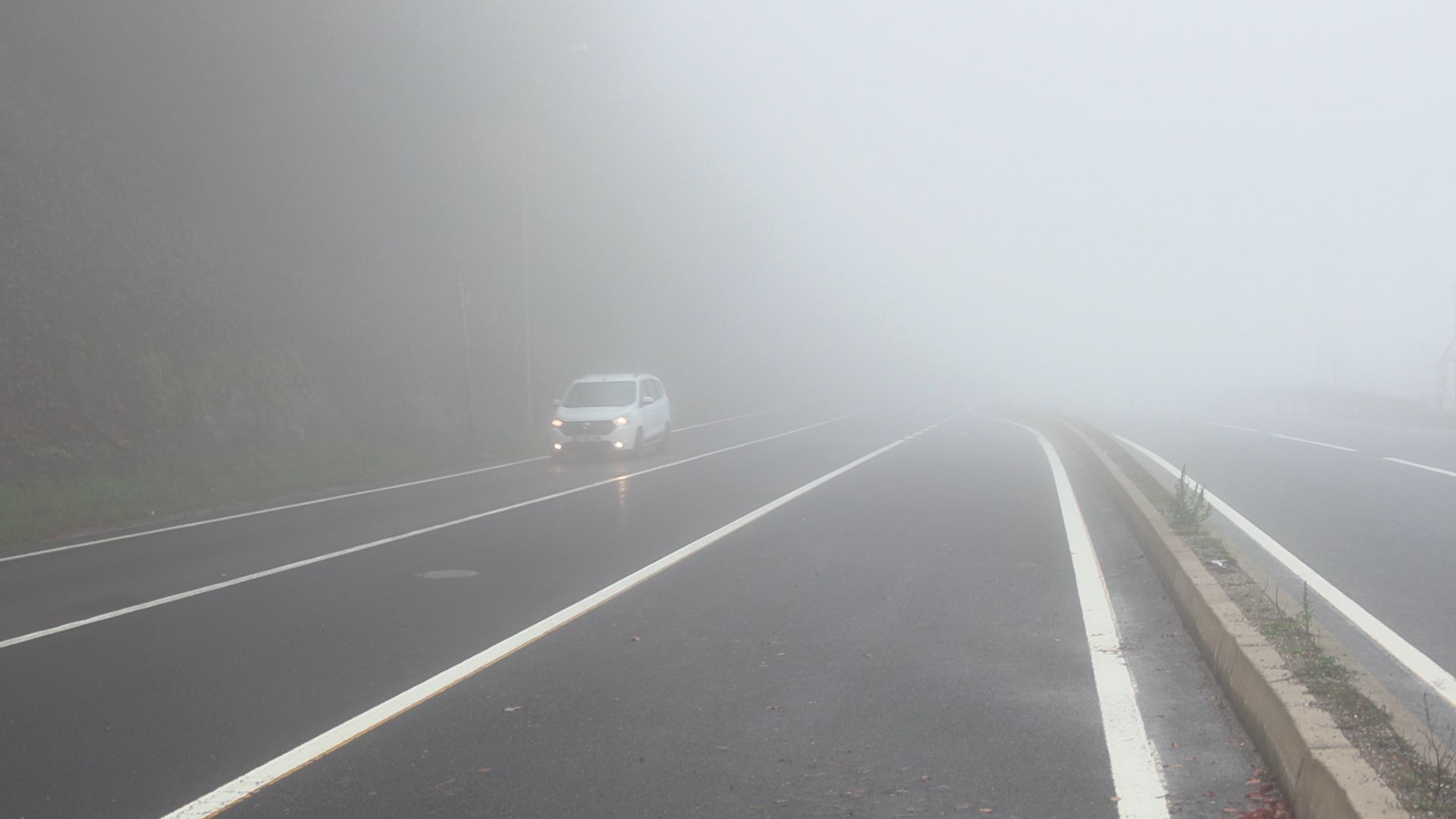 Sis nedeniyle rampaların ve virajların bulunduğu yol güzergahı üzerinde araçlar yavaş ilerledi.