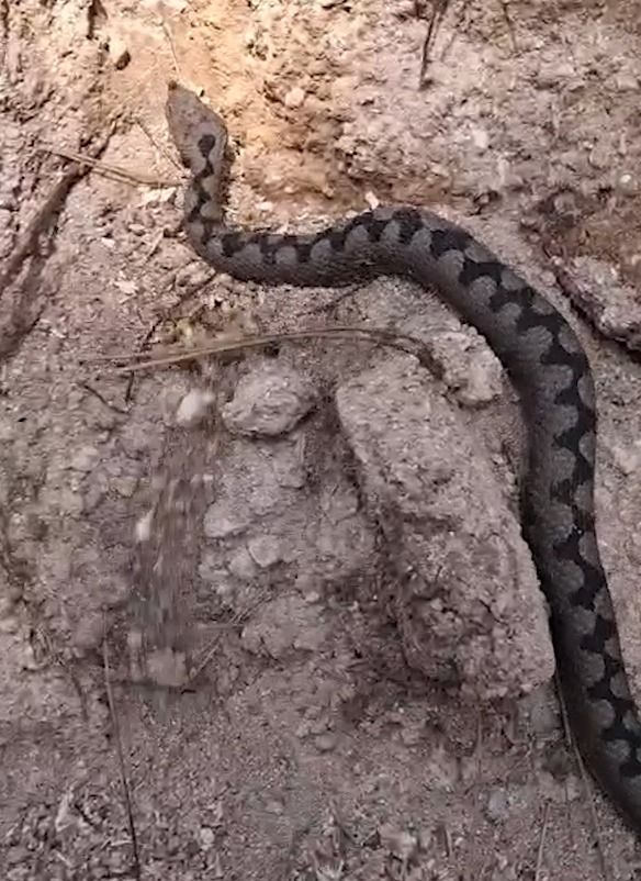 BOLU’da orman üretim işçileri tarafından istiflenen odunların arasında, nesli tükenme tehlikesi altında Kafkas burunlu engerek yılanı cep telefonuyla görüntülendi.