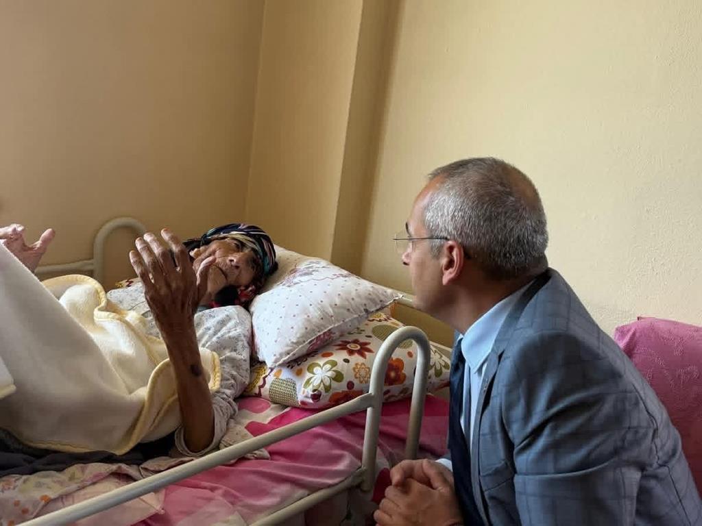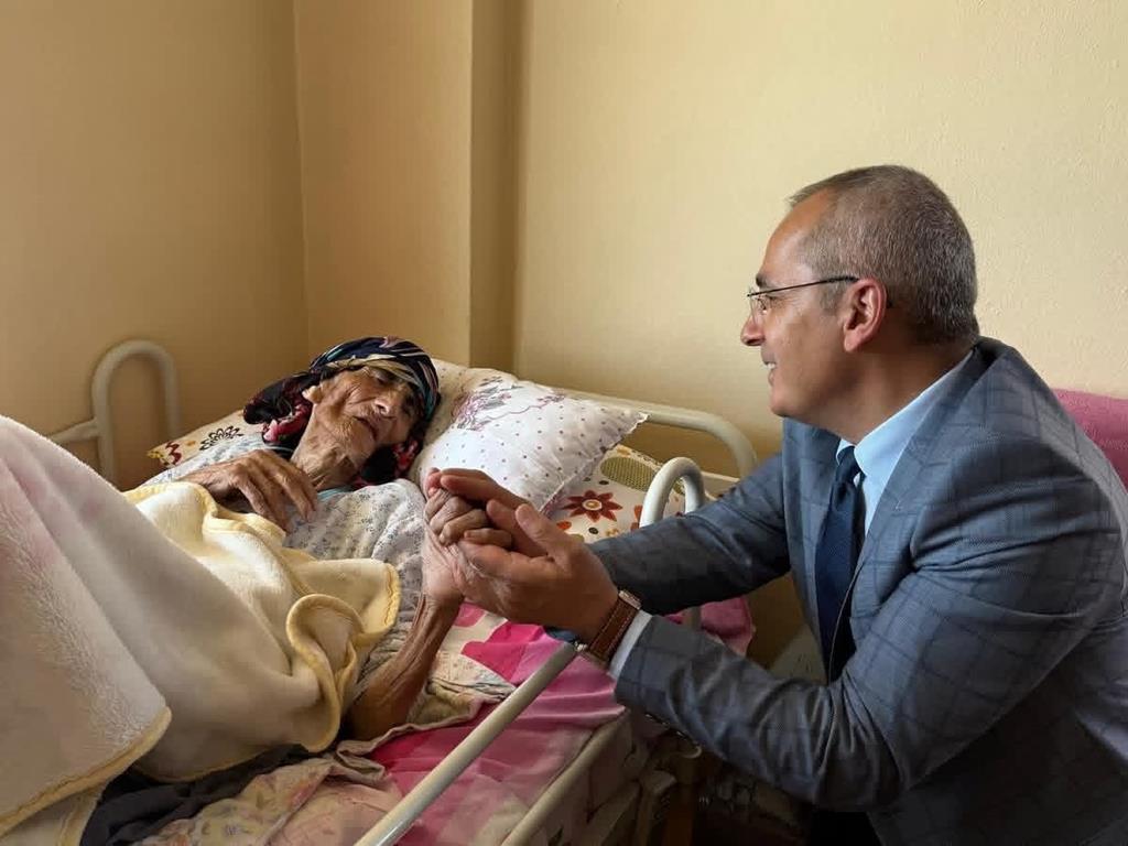 Düzce'nin Akçakoca ilçesinde kendisi de hasta olmasına rağmen 97 yaşındaki yatalak annesine ve 75 yaşındaki kocasına bakan kadına Akçakoca Kaymakamı Deniz Pişkin özel bir ziyarette bulundu.