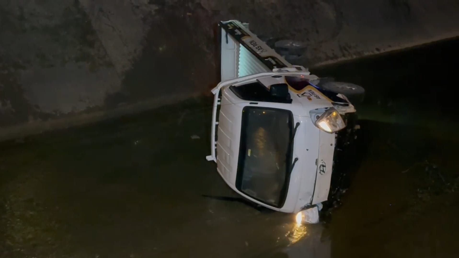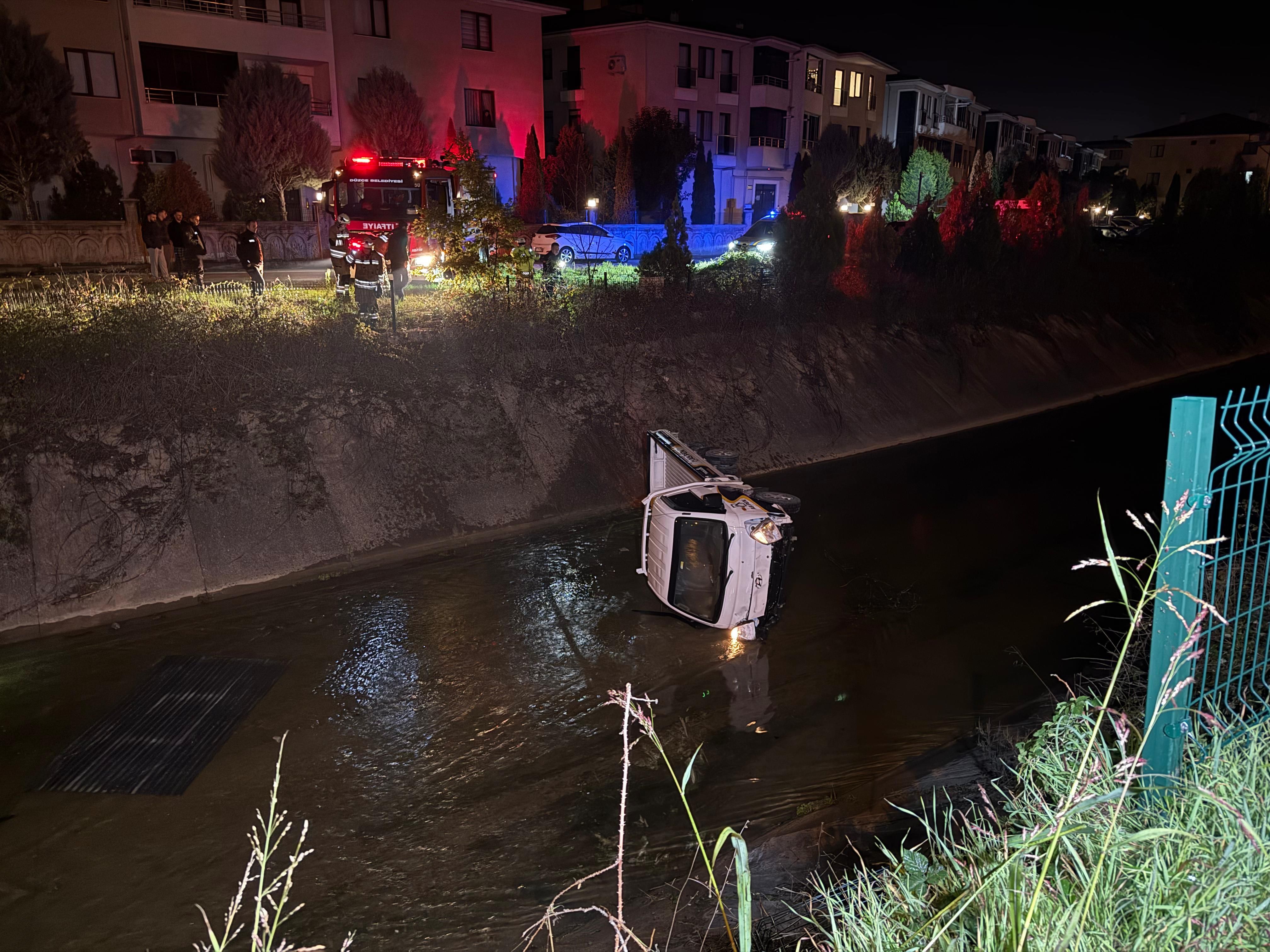 DÜZCE'de sulama kanalına devrilen kamyonetin alkollü sürücüsü Alihan A. hafif yaralandı.