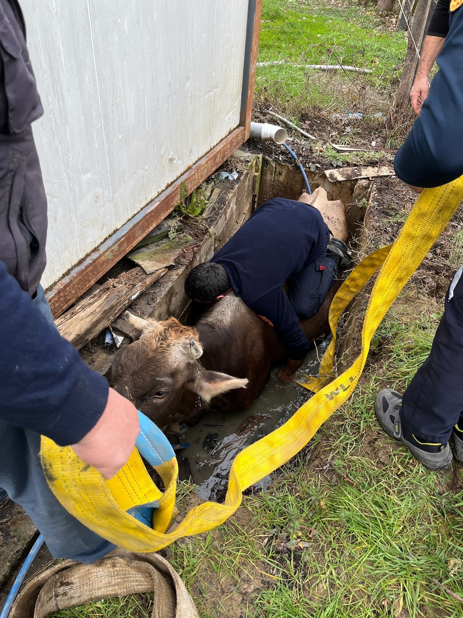 Düzce’de kuyuya düşen inek Cumayeri Belediyesi ekiplerince yapılan çalışmanın ardından bulunduğu yerden kurtarıldı.