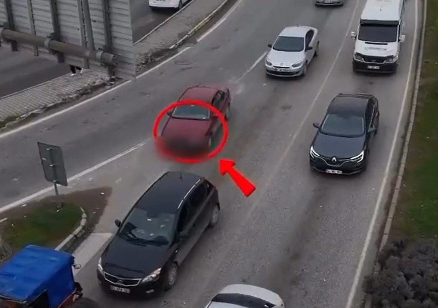Dron kamerasıyla yapılan takiplerde, şerit ihlali yapan ve trafik güvenliğini tehlikeye düşüren sürücüler havadan saniye saniye tespit edildi. Uygulama sonucunda kural ihlali yaptığı belirlenen 107 araç sürücüsüne Karayolları Trafik Kanunu'nun ilgili maddelerince idari para cezası uygulandı.