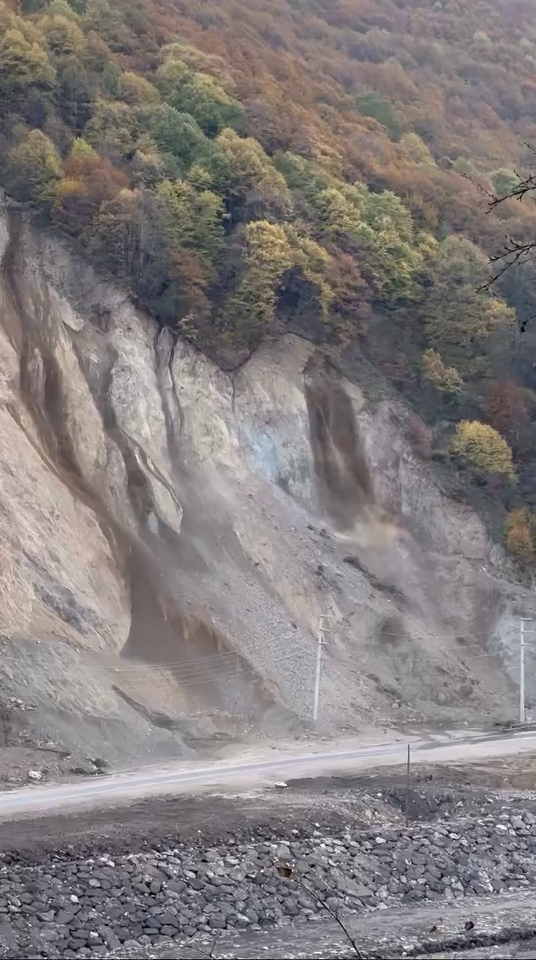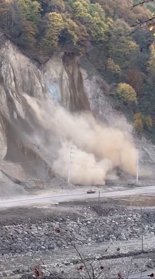 Bölgede meydana gelen heyelan anı ise çevredeki vatandaşların cep telefonu kamerasına yansıdı. Toprak kayması ile başlayan heyelanda güzergahta olan araçlara uyarılar yapılmasıyla devam ederken, kayaların yola düşmesi ile son bulduğu anlar kayıt altına alındı.