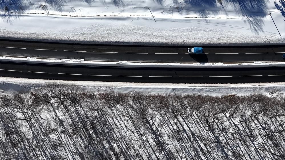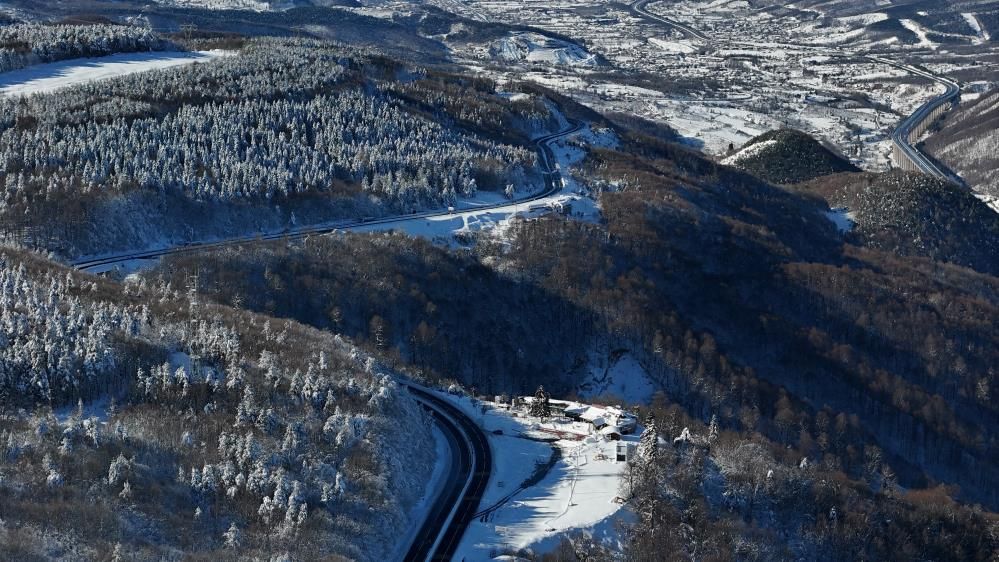 Türkiye’nin en önemli geçiş güzergahlarından biri olan D-100 kara yolunun Bolu Dağı kesiminde, 3 gün boyunca etkili olan yoğun kar yağışı yerini sessizliğe bıraktı. Yağışın ardından ormanlık alanların tamamen beyazla kaplandığı bölgede kartpostallık görüntüler oluştu. Bölgedeki kar kalınlığı yer yer 80 santimetreye kadar ulaştı.